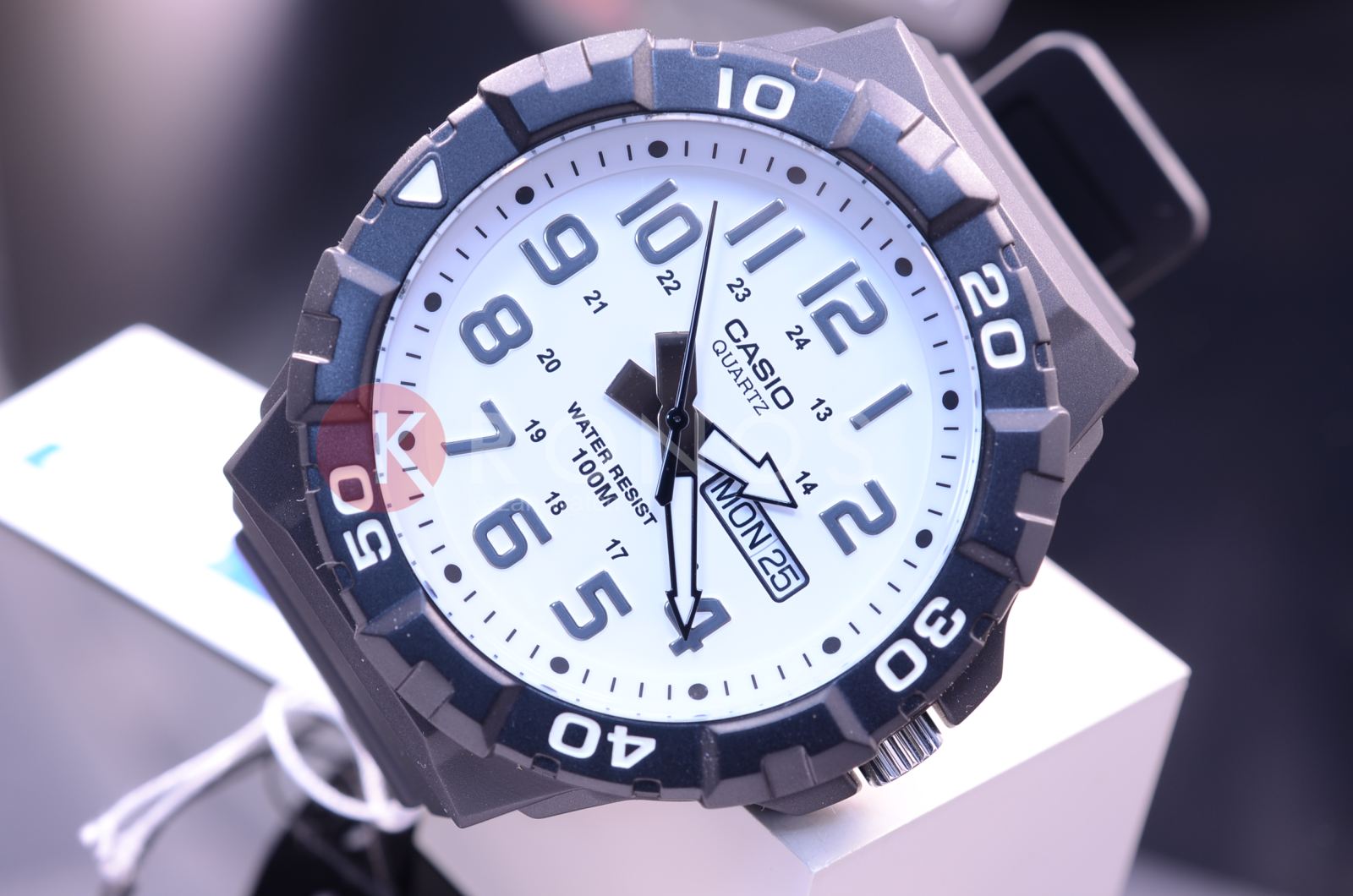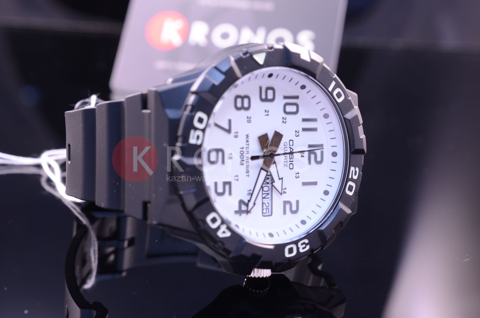 Японские мужские часы. Простые и удобные часы с большими круглым циферблатом. Корпус - Пластиковый; Стекло - Пластик; Водозащита - 100 м. (WR 100); Материал ремешка - Пластиковый; Цвет ремешка - Черный; Цвет циферблата - Белый.