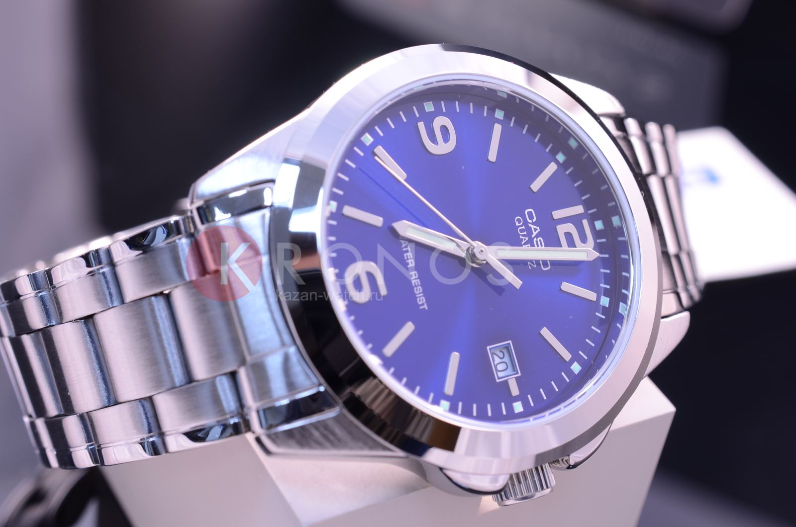 Данная модель от Casio придется по вкусу ценителям высокого качества, комфорта и сдержанного дизайна. Корпус выполнен из латуни. Стальной браслет прочно обхватывает запястье и закрепляется с помощью раскладывающейся застежки. Синий циферблат традиционной формы обрамляет аккуратный безельБезельВнешний ободок, закрепляющий стекло. В спортивных часах так называется поворотное кольцо с делениями на циферблате, выполняет роль таймера – замеряет отрезки времени на шкале. Неподвижный безель – элемент декора. Однонаправленно вращающийся безель на дайверских часах позволяет фиксировать моменты погружения и выныривания на поверхность.. Есть небольшое окошечко с календарем. Крупные отчетливые временные отметки сделаны в виде штрихов и арабских цифр. Подсветка NeobriteПодсветка NeobriteИспользование светонакопительных составов на основе сульфида цинка или алюмината стронция, яркий свет можно наблюдать на протяжении 6-10 часов после «зарядки» часов около источника света. обеспечивает видимость показателей в темное время суток. Тип механизма - кварцевый. Вес составляет 92 грамма.