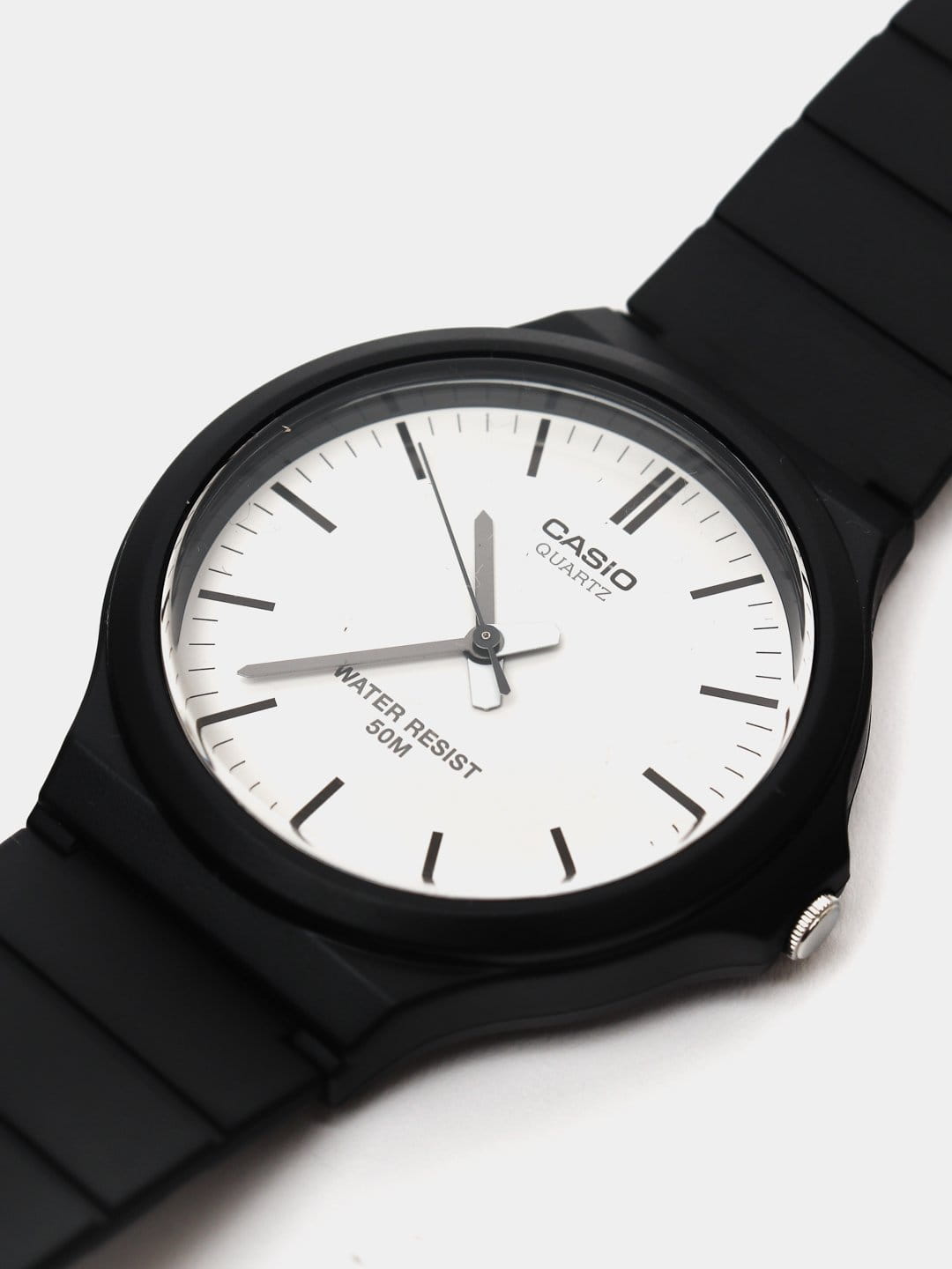 Японские мужские наручные часы  с органическим стеклом Casio Collection MW-240-7E, кварцевый механизм с высокой точностью. Класс водозащиты: 50 метров, позволит защитить корпус от случайных брызг или капель дождя. Корпус часов изготовлен из пластика. Пластиковый ремешок на стандартной застёжке. Метки в виде штрихов. Заводная головка с защитой. Задняя крышка на 4-х винтах.