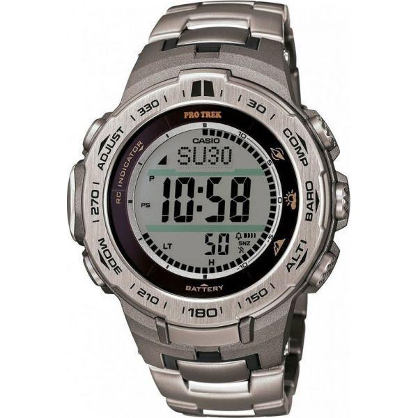 Casio PRW-3100T-7E — современные мужские противоударные кварцевые часы круглой формы с серо-черным аналоговым+цифровым циферблатом. Корпус из нержавеющей стали с пластиковыми вставками с минеральным стеклом удерживается на руке прочным титановым браслетом. Часы Casio PRW-3100T-7E оснащены секундомером, таймером обратного отсчета, высотомером, барометром, термометром и компасом. Степень водонепроницаемости до 100 метров. Источник энергии - солнечная батарея.