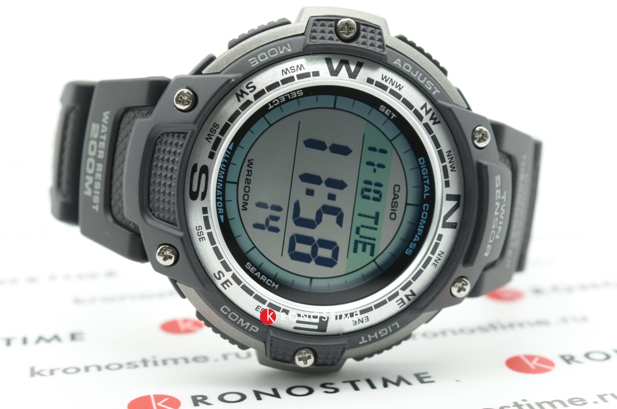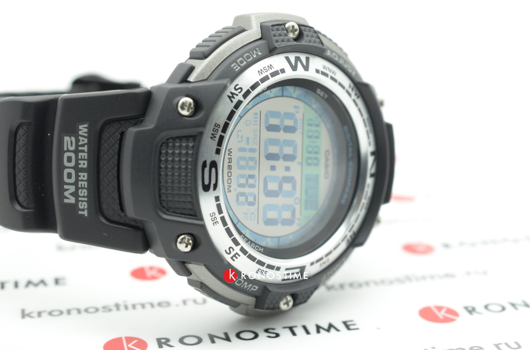 Электронные часы с компасом и термометром в водонепроницаемом исполнении (200 м), идеально для туристических походов. Очень легкие и удобные, на руке практически не ощущаются.