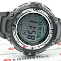 Корпус и браслет многофункциональных и стильных часов от Casio выполнены из высокопрочных полимерных материалов. Есть функции для определения погоды. Часы способны выдержать температуру даже ниже, чем -10 °C. Секундомер измеряет прошедшее время с точностью в 1/100 секунды. Быть максимально пунктуальными помогут 5 независимых будильников. Встроен цифровой компас. Электролюминесцентная подсветкаЭлектролюминесцентная подсветкаЭлектролюминесцентная панель устанавливается под ЖК-экраном часов, при нажатии кнопки электричество преобразуется в свет за счёт подачи напряжения на атомы фосфора, такой тип подсветки позволяет освещать весь циферблат. обеспечивает видимость информации в темноте. Высокая водонепроницаемость в 200 WR.