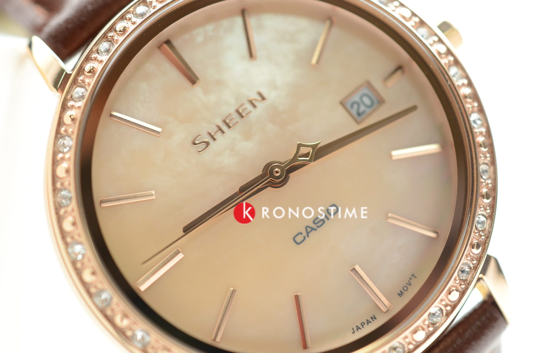 Привлекательный экстерьер - это далеко не единственное преимущество Casio Sheen Часы могут отображать время, они способны погружаться в воду на глубину до 50 метров, а стильный циферблат, украшенный камнями от Swarovski, надежно укреплен минеральным стеклом, защищающим часы от практических любых механических повреждений
