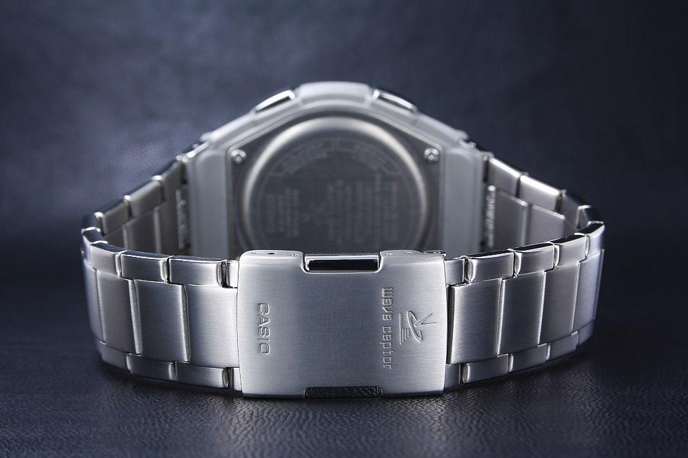 Мужские японские наручные часы с пластиковым стеклом Casio Wave Ceptor WVA-M650TD-1A, кварцевый механизм с высокой точностью. Класс водозащиты: 50 метров, позволит защитить корпус от случайных брызг или капель дождя. Корпус часов изготовлен из титана. Титановый браслет на раскладной застёжкеРаскладная застёжкаТакой тип застёжки используется только на браслетах из металла. Она никогда не раскрывается полностью, происходит разделение на 2 и более частей. Раскладывающая застёжка снизит вероятность потери часов к минимуму.. Питание от солнечной энергии Tough SolarTough SolarТехнология основана на подзарядке аккумулятора от источника солнечного света, специальная панель улавливает солнечные лучи и преобразует их в энергию для работы часов. Достаточно пары минут нахождения на солнце для функционирования часов в течении суток. - высокоэффективная солнечная батарея, аккумулятор, индикатор низкого заряда батареи. Функция автоматического сохранения энергии. Время работы аккумулятора без подзарядки приблизительно 6 месяцев, при включенной функции сохранения энергии приблизительно 20 месяцев. Светодиодная подсветкаСветодиодная подсветкаСветодиодная или LED-подсветка обеспечивает появление яркого холодного свечения за счёт LED-элементов - маленьких лампочек. Они потребляют минимальное количество энергии, чаще всего можно встретить 1 светодиод, в нижней части циферблата. циферблата, функция автоподсветки освещает циферблат при повороте часов к лицу. Послесвечение. Цвет подсветки: оранжевый. Необритовое светонакопительное покрытие обеспечивает длительное послесвечение в темноте даже после кратковременного нахождения на свету. 12-ти и 24-х часовой формат времени. СекундомерСекундомерСекундоме́р — прибор, способный измерять интервалы времени с точностью до долей секунды. с точностью показаний 1/100с и временем измерения 24ч. SPLIT-хронографХронографФункция позволяет измерять отрезки времени с особой точностью: часы, минуты, секунды. Верным признаком хронографа является наличие на циферблате 3 дополнительных окошек-счётчиков.. ТаймерТаймерОтсчитывает секунды в обратном направлении в заданном интервале времени. обратного отсчета от 1мин до 1ч с автоповтором. Мировое времяМировое время Полезное часовое усложнение, отображающее время в основных городах и известных областях по всему миру, оно связано с часовыми поясами, удобно для путешественников и бизнесменов. – 48 городов (29 часовых поясов), всемирное координированное время (UTCUTCВсемирное кординационное время, не имеющее привязки к географическому положению Гринвича, основывается на атомном отсчёте времени. Регулировка времени осуществляется более точно, чем устаревшее GMT.