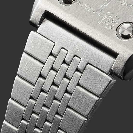 Спортивные японские мужские часы с секундомеромСекундомерСекундоме́р — прибор, способный измерять интервалы времени с точностью до долей секунды. Casio Vintage A1100D-1, кварцевый механизм с высокой точностью. Издавая звуковой сигнал в установленное время, будильникБудильникБуди́льник — часы, в заданный момент времени подающие звуковой, световой и/или в редких случаях другой сигнал. напоминает о событиях, которые повторяются каждый день. Корпус и браслет часов изготовлены из нержавеющей стали. Класс водозащиты: 30 метров, позволит защитить корпус от случайных брызг или капель дождя. Стальной браслет на раскладной застёжкеРаскладная застёжкаТакой тип застёжки используется только на браслетах из металла. Она никогда не раскрывается полностью, происходит разделение на 2 и более частей. Раскладывающая застёжка снизит вероятность потери часов к минимуму..