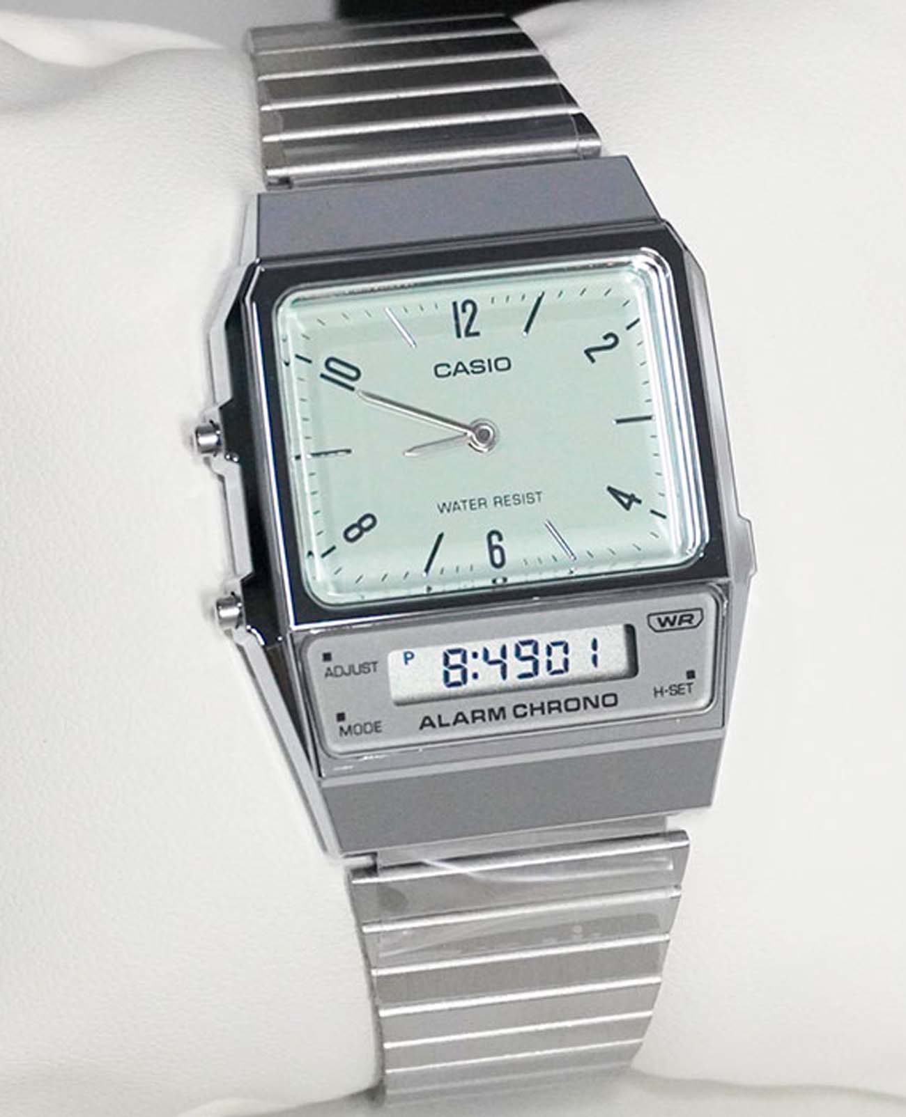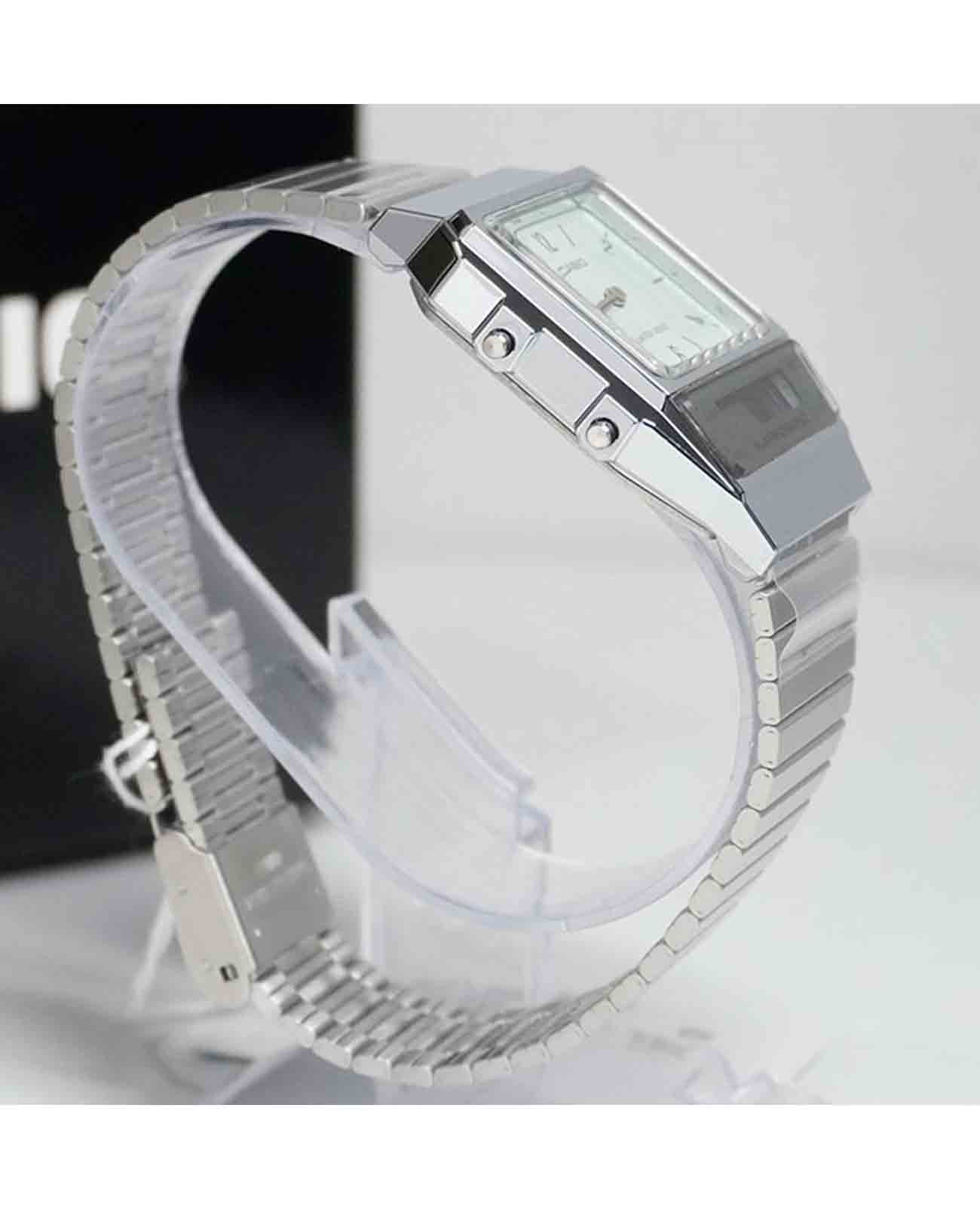 Спортивные японские унисекс часы с секундомеромСекундомерСекундоме́р — прибор, способный измерять интервалы времени с точностью до долей секунды. Casio Vintage AQ-800E-7ADF (AQ-800E-7A2), кварцевый механизм с высокой точностью. Класс водозащиты: 30 метров, позволит защитить корпус от случайных брызг или капель дождя. Корпус часов изготовлен из пластика серебристого цвета. На белом циферблате центральные часовая и минутная стрелки. Отдельно вынесен дополнительный циферблат мирового времениМировое время Полезное часовое усложнение, отображающее время в основных городах и известных областях по всему миру, оно связано с часовыми поясами, удобно для путешественников и бизнесменов. , позволяющий одновременно отобразить время двух часовых поясов . У модели присутствуют функции секундомераСекундомерСекундоме́р — прибор, способный измерять интервалы времени с точностью до долей секунды. с точностью 1/100 секунды и пределом измерения 1 час, ежедневного будильникаБудильникБуди́льник — часы, в заданный момент времени подающие звуковой, световой и/или в редких случаях другой сигнал.. Стальной браслет на раскладной застёжкеРаскладная застёжкаТакой тип застёжки используется только на браслетах из металла. Она никогда не раскрывается полностью, происходит разделение на 2 и более частей. Раскладывающая застёжка снизит вероятность потери часов к минимуму..