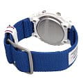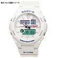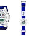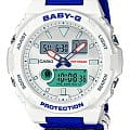 Лимитированные японские женские часы с датчиком приливов и отливов Casio Baby-G BAX-125-2A, кварцевый механизм с высокой точностью. Класс водозащиты: 100 метров, позволит плавать, нырять и заниматься другими водными видами спорта. Корпус часов изготовлен из пластика белого цвета. Брендированная задняя крышка BAX-125 получила уникальную гравировку “25 Anniversary”. В комплекте два съемных ремешка — белый классический полиуретановый и вариант из нейлоновой ткани синего цвета. Модель создана для морских активностей — на дисплее с отдельных окошках отображаются фазы луны и высота прилива в конкретной точке земного шара. Нажатие нижней правой кнопки запускает почасовое отображение уровня волны в конкретном месте, тем самым позволяя выбрать наиболее удачное время для серфинга. Для подсветки используется светодиодСветодиодная подсветкаСветодиодная или LED-подсветка обеспечивает появление яркого холодного свечения за счёт LED-элементов - маленьких лампочек. Они потребляют минимальное количество энергии, чаще всего можно встретить 1 светодиод, в нижней части циферблата., освещающий циферблат. Подсветку можно включить вручную или подняв руку вверх и направив ее к лицу. Часы обладают функциями будильникаБудильникБуди́льник — часы, в заданный момент времени подающие звуковой, световой и/или в редких случаях другой сигнал. и секундомераСекундомерСекундоме́р — прибор, способный измерять интервалы времени с точностью до долей секунды.