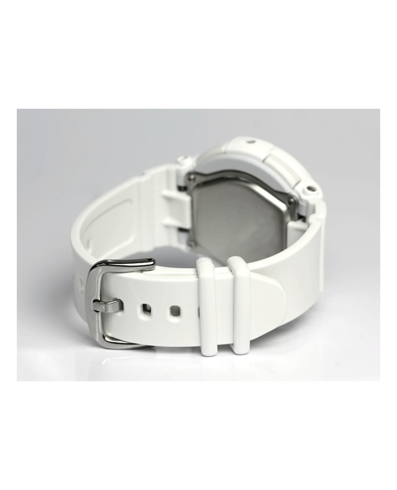 Японские женские часы-хронографХронографФункция позволяет измерять отрезки времени с особой точностью: часы, минуты, секунды. Верным признаком хронографа является наличие на циферблате 3 дополнительных окошек-счётчиков. часы Casio Baby-G BGA-161-7B2 из коллекции Baby-G. Серия, которая выражает спортивность и цвет, которые являются основой бренда Baby-G. Минеральное стеклоМинеральное стеклоМинеральное стекло представляет собой искусственно выращенный минерал кварца. Такое стекло отличается особой устойчивостью к повреждениям и царапинам. Уступает по некоторым качествам сапфировому стеклу. устойчивое к появлению царапин, обладающее высокой прозрачностью. Ударопрочный корпусУдаропрочный корпусМеханизм заключён в корпус, выполненный из современных материалов, устойчивых к ударам, механическим повреждениям и падению с высоты: инновационный пластик, карбон, нержавеющая сталь, титан. защищает механизм от ударов и вибрации. Циферблат подсвечивается подсветкой Neon IlluminatorNeon IlluminatorУникальная подсветка циферблата. На индексы наносятся специальные флуоресцентные чернила, которые подсвечиваются светодиодной подсветкой. ,  благодаря наличию функции задержки, после отпускания кнопки освещение горит еще несколько секунд. Функция Мирового времениМировое время Полезное часовое усложнение, отображающее время в основных городах и известных областях по всему миру, оно связано с часовыми поясами, удобно для путешественников и бизнесменов. . СекундомерСекундомерСекундоме́р — прибор, способный измерять интервалы времени с точностью до долей секунды. с точностью измерения 1/100 секунды и измерением до 23 часов 59 минут 59,99 cек. ТаймерТаймерОтсчитывает секунды в обратном направлении в заданном интервале времени. обратного отсчета (диапазон времени 24 часа),  автоматический календарь, 12/24 отображение времени. 5 ежедневных будильниковБудильникБуди́льник — часы, в заданный момент времени подающие звуковой, световой и/или в редких случаях другой сигнал., один с функцией Snooze. Класс водозащиты: 100 метров, позволит плавать без погружения. Ремешок из полимерного материала на стандартной застежке.