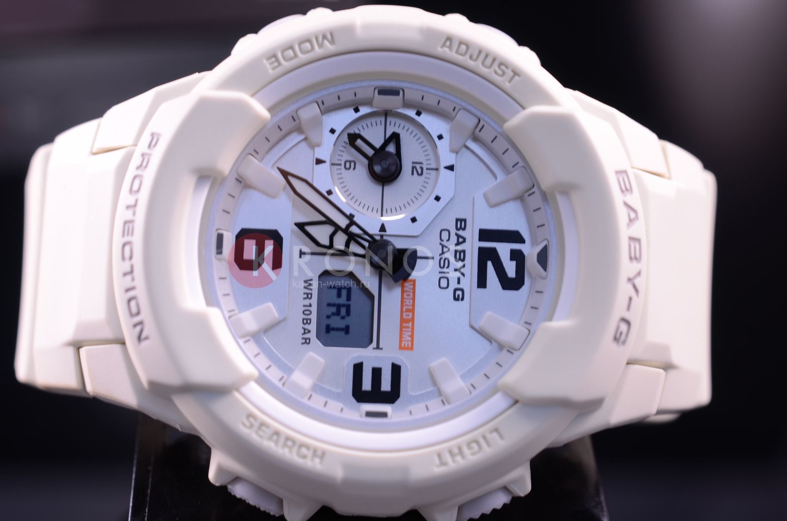 Японские женские часы-хронографХронографФункция позволяет измерять отрезки времени с особой точностью: часы, минуты, секунды. Верным признаком хронографа является наличие на циферблате 3 дополнительных окошек-счётчиков. Casio Baby-G BGA-230-7B2 из коллекции Baby-G. Минеральное стеклоМинеральное стеклоМинеральное стекло представляет собой искусственно выращенный минерал кварца. Такое стекло отличается особой устойчивостью к повреждениям и царапинам. Уступает по некоторым качествам сапфировому стеклу. устойчивое к появлению царапин, обладающее высокой прозрачностью. Корпус часов изготовлен из полимерного материала. Светодиодная подсветкаСветодиодная подсветкаСветодиодная или LED-подсветка обеспечивает появление яркого холодного свечения за счёт LED-элементов - маленьких лампочек. Они потребляют минимальное количество энергии, чаще всего можно встретить 1 светодиод, в нижней части циферблата. с функцией послесвечения. Ударопрочный корпусУдаропрочный корпусМеханизм заключён в корпус, выполненный из современных материалов, устойчивых к ударам, механическим повреждениям и падению с высоты: инновационный пластик, карбон, нержавеющая сталь, титан. защищает механизм от ударов и вибрации. Функция Мирового времениМировое время Полезное часовое усложнение, отображающее время в основных городах и известных областях по всему миру, оно связано с часовыми поясами, удобно для путешественников и бизнесменов. , всемирное координированное время UTCUTCВсемирное кординационное время, не имеющее привязки к географическому положению Гринвича, основывается на атомном отсчёте времени. Регулировка времени осуществляется более точно, чем устаревшее GMT.