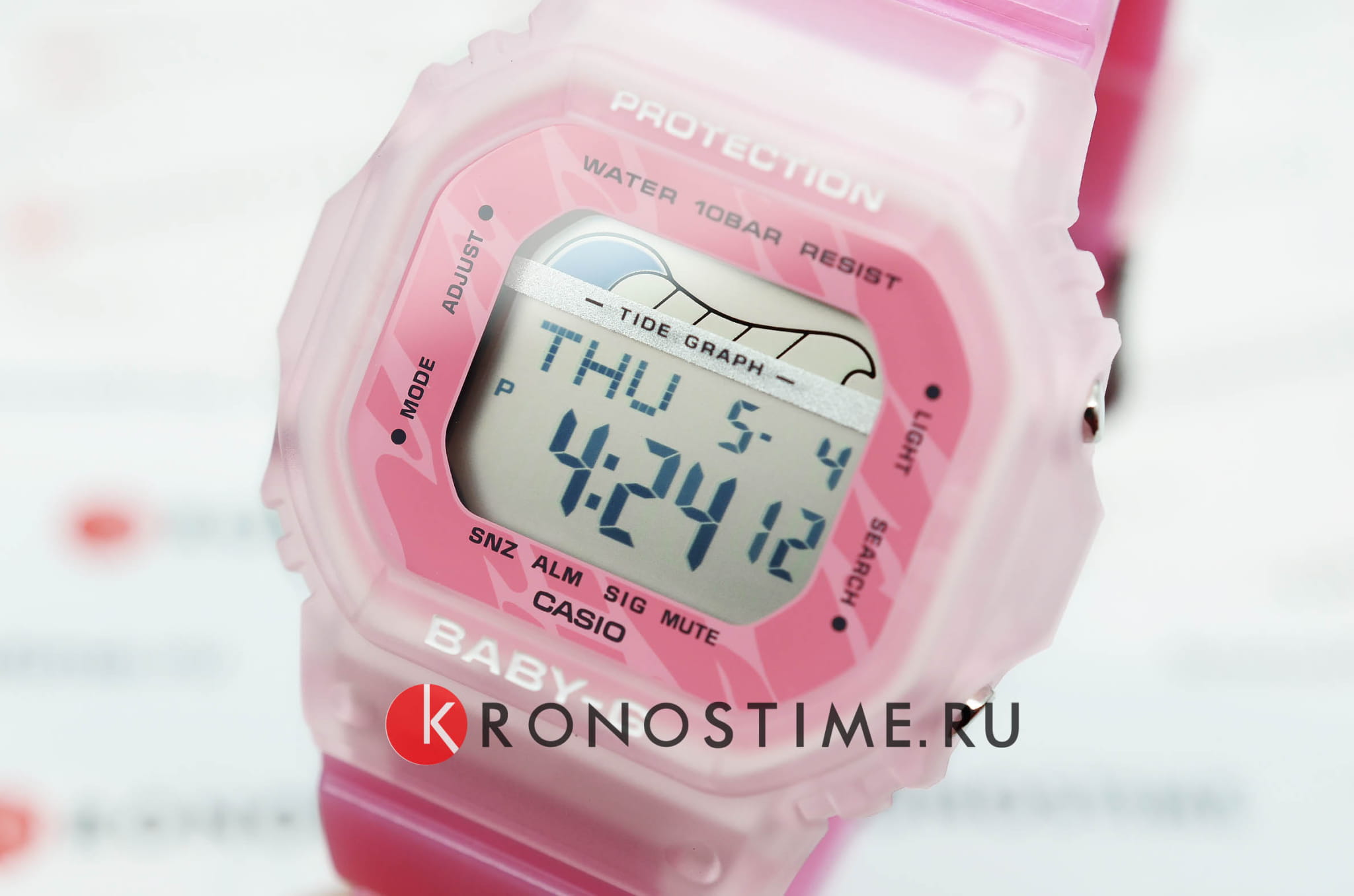Женские японские часы-хронографХронографФункция позволяет измерять отрезки времени с особой точностью: часы, минуты, секунды. Верным признаком хронографа является наличие на циферблате 3 дополнительных окошек-счётчиков. Casio Baby-G BLX-565S-4E, кварцевый механизм с высокой точностью. Класс водозащиты: 100 метров, позволит плавать, нырять и заниматься другими водными видами спорта. Корпус часов изготовлен из пластика розового цвета. Ударопрочный корпусУдаропрочный корпусМеханизм заключён в корпус, выполненный из современных материалов, устойчивых к ударам, механическим повреждениям и падению с высоты: инновационный пластик, карбон, нержавеющая сталь, титан. защищает механизм от ударов и вибрации. Светодиодная подсветкаСветодиодная подсветкаСветодиодная или LED-подсветка обеспечивает появление яркого холодного свечения за счёт LED-элементов - маленьких лампочек. Они потребляют минимальное количество энергии, чаще всего можно встретить 1 светодиод, в нижней части циферблата. освещает весь циферблат, после отпускания кнопки свечение продолжается еще некоторое время. Особенность модели в функциях будильникаБудильникБуди́льник — часы, в заданный момент времени подающие звуковой, световой и/или в редких случаях другой сигнал., секундомераСекундомерСекундоме́р — прибор, способный измерять интервалы времени с точностью до долей секунды., таймераТаймерОтсчитывает секунды в обратном направлении в заданном интервале времени. и мирового времениМировое время Полезное часовое усложнение, отображающее время в основных городах и известных областях по всему миру, оно связано с часовыми поясами, удобно для путешественников и бизнесменов. . Циферблат подсвечивается ярким светодиодомСветодиодная подсветкаСветодиодная или LED-подсветка обеспечивает появление яркого холодного свечения за счёт LED-элементов - маленьких лампочек. Они потребляют минимальное количество энергии, чаще всего можно встретить 1 светодиод, в нижней части циферблата.. Послесвечение. Цвет подсветки: белый. Отображение возраста и фазы Луны. Отображение сведений о приливах и отливах на заданную дату и время. 12-ти и 24-х часовой формат времени. Функции включения/отключения летнего времени и включения/отключения звука. Батарея рассчитана на 3 года. Задняя крышка крепится на 4-х винтах.