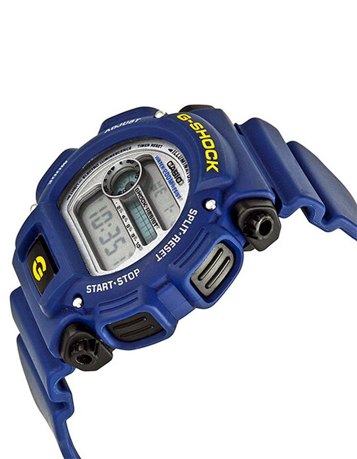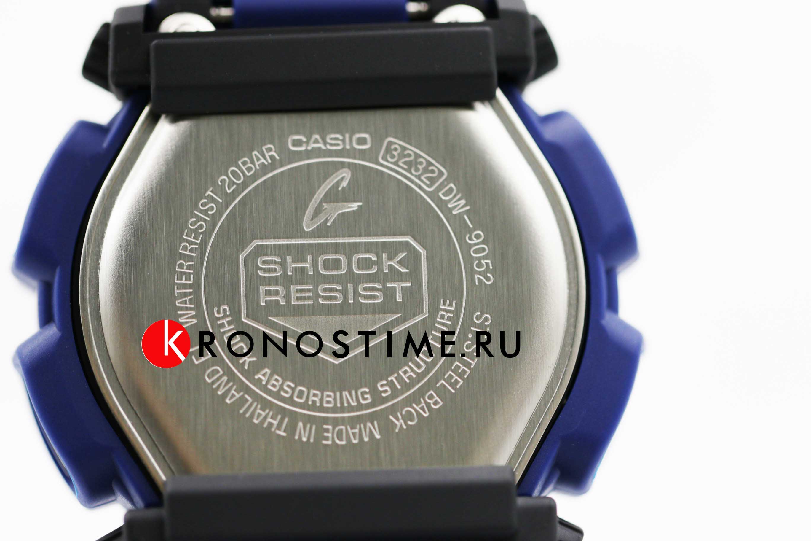 Многофункциональные, спортивные мужские часы Casio G-Shock DW-9052-2V, кварцевый механизм с высокой точностью. Класс водозащиты: 200 метров, позволит плавать, нырять и заниматься другими водными видами спорта. Корпус часов изготовлен из пластика синего цвета. Ударопрочный корпусУдаропрочный корпусМеханизм заключён в корпус, выполненный из современных материалов, устойчивых к ударам, механическим повреждениям и падению с высоты: инновационный пластик, карбон, нержавеющая сталь, титан. защищает механизм от ударов и вибрации. Электролюминесцентная подсветкаЭлектролюминесцентная подсветкаЭлектролюминесцентная панель устанавливается под ЖК-экраном часов, при нажатии кнопки электричество преобразуется в свет за счёт подачи напряжения на атомы фосфора, такой тип подсветки позволяет освещать весь циферблат. освещает весь циферблат, после отпускания кнопки свечение продолжается еще некоторое время. СекундомерСекундомерСекундоме́р — прибор, способный измерять интервалы времени с точностью до долей секунды. с точностью показаний 1/100 сек и максимальным временем измерения 1 час. 3 ежедневных будильникаБудильникБуди́льник — часы, в заданный момент времени подающие звуковой, световой и/или в редких случаях другой сигнал..