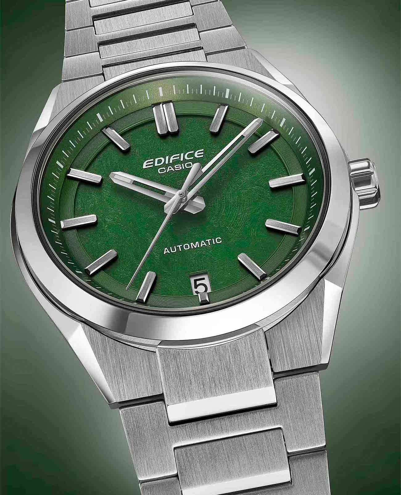 Мужские механические часы Casio Edifice EFK-100D-3A — это стильный аксессуар, сочетающий в себе надёжность и функциональность. Модель выполнена из нержавеющей стали с размерами корпуса 43,5x39x12,5 мм, а его масса составляет 148 г. Защиту механизма обеспечивает сапфировое стеклоСапфировое стеклоПрочный и надёжный материал из кристалла сапфира синтетического происхождения, характеризующийся особой твёрдостью и устойчивостью к царапинам и повреждениям., устойчивое к повреждениям. Задняя пластина имеет прозрачную форму с винтовым замком, что позволяет наблюдать за работой механизма. Браслет из нержавеющей стали оснащён тройной застёжкой с одним касанием, обеспечивающей комфорт и надёжную фиксацию. Стандартный размер ремешка регулируется от 150 до 205 мм. Часы водонепроницаемы до 10 бар (, что позволяет использовать их при плавании и других водных активностях без глубокого погружения. Точность хода составляет ±45 секунд в день, а запас хода — около 40 часов. Часы имеют 24 драгоценных камня и частоту колебаний 21 600 полуколебаний в час. Эти часы станут универсальным аксессуаром для тех, кто ценит сочетание стиля, функциональности и надёжности — идеальный выбор для повседневной носки и активного образа жизни.