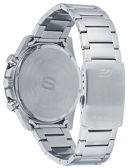 Мужские японские часы-хронографХронографФункция позволяет измерять отрезки времени с особой точностью: часы, минуты, секунды. Верным признаком хронографа является наличие на циферблате 3 дополнительных окошек-счётчиков. Casio Edifice EFR-573D-2A, кварцевый механизм с высокой точностью. Класс водозащиты: 100 метров, позволит плавать, нырять и заниматься другими водными видами спорта. Корпус часов изготовлен из стали. Крупные индексные метки и встроенные циферблаты дополняют обтекаемый дизайн с холодным синим циферблатом и раскаленными стрелками для придания дополнительного спортивного стиля. Динамичный мужской аксессуар подтолкнет вас на покорение новых высот. Подсветка NeobriteПодсветка NeobriteИспользование светонакопительных составов на основе сульфида цинка или алюмината стронция, яркий свет можно наблюдать на протяжении 6-10 часов после «зарядки» часов около источника света. обеспечивает длительное послесвечение в темноте даже после кратковременного нахождения на свету. Часы-хронографХронографФункция позволяет измерять отрезки времени с особой точностью: часы, минуты, секунды. Верным признаком хронографа является наличие на циферблате 3 дополнительных окошек-счётчиков. с секундомеромСекундомерСекундоме́р — прибор, способный измерять интервалы времени с точностью до долей секунды. с разрешением показаний 1с и временем измерения 10мин. 12-ти и 24-х часовой формат времени. Окошко даты. Ретроградный указатель минутной стрелки хронографаХронографФункция позволяет измерять отрезки времени с особой точностью: часы, минуты, секунды. Верным признаком хронографа является наличие на циферблате 3 дополнительных окошек-счётчиков.. Завинчивающаяся задняя крышка. Рифленая заводная головка с защитой. Стальной браслет на раскладной застёжкеРаскладная застёжкаТакой тип застёжки используется только на браслетах из металла. Она никогда не раскрывается полностью, происходит разделение на 2 и более частей. Раскладывающая застёжка снизит вероятность потери часов к минимуму., расстегиваемая одним касанием.