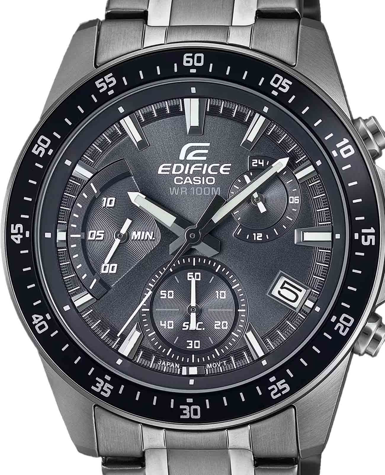 Подчеркните свой стиль с помощью классического хронографа EDIFICE с корпусом среднего размера и тщательно проработанным дизайном. Японские мужские кварцевые часы Casio Edifice EFV-540DC-1CVUDF, кварцевый механизм с высокой точностью. Минеральное стеклоМинеральное стеклоМинеральное стекло представляет собой искусственно выращенный минерал кварца. Такое стекло отличается особой устойчивостью к повреждениям и царапинам. Уступает по некоторым качествам сапфировому стеклу. устойчивое к мелким механическим повреждениям. Корпус часов изготовлен из нержавеющей стали с IP-покрытиемIP-покрытиеМетод ионного напыления. Демонстрирует повышенную устойчивость к истиранию, окислению и химическим веществам. Под воздействием высокого давления и температуры около 1500°C молекулы металла надёжно соединяются с частицами корпуса часов.. Приблизительный срок службы батареи: 3 года. Стрелки и метки с люминесцентным покрытиемЛюминесцентное покрытиеПозволяет считывать показания времени в темноте. Производители наносят на стрелки, часовые индексы, безель или поверхность циферблата светонакопительный состав, дающий холодное свечение.. 12-ти и 24-х часовой формат времени. СекундомерСекундомерСекундоме́р — прибор, способный измерять интервалы времени с точностью до долей секунды. с двумя точностями показаний: 1/100с (до 1ч) и 1с (после 1ч) и временем измерения 24ч. Класс водозащиты: 100 метров, позволит плавать, нырять и заниматься другими водными видами спорта. Стальной браслет с IP-покрытиемIP-покрытиеМетод ионного напыления. Демонстрирует повышенную устойчивость к истиранию, окислению и химическим веществам. Под воздействием высокого давления и температуры около 1500°C молекулы металла надёжно соединяются с частицами корпуса часов. на раскладной застёжкеРаскладная застёжкаТакой тип застёжки используется только на браслетах из металла. Она никогда не раскрывается полностью, происходит разделение на 2 и более частей. Раскладывающая застёжка снизит вероятность потери часов к минимуму..