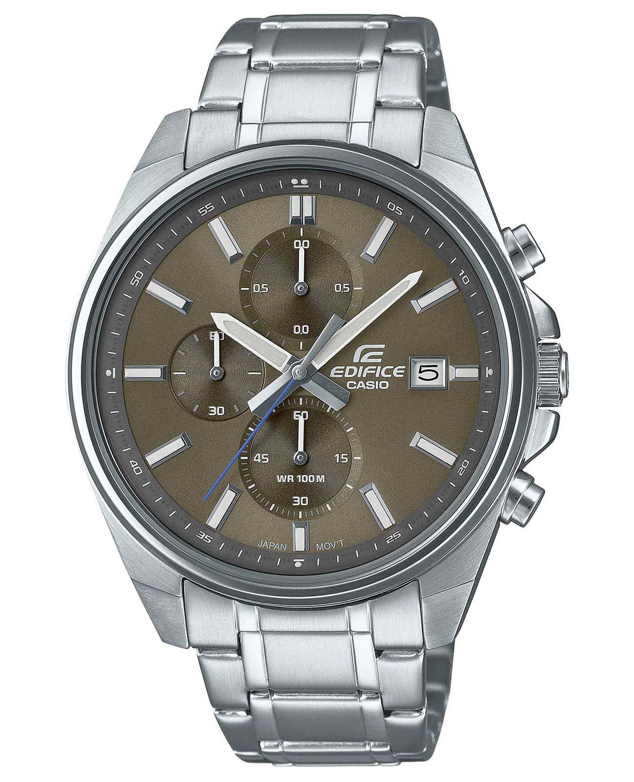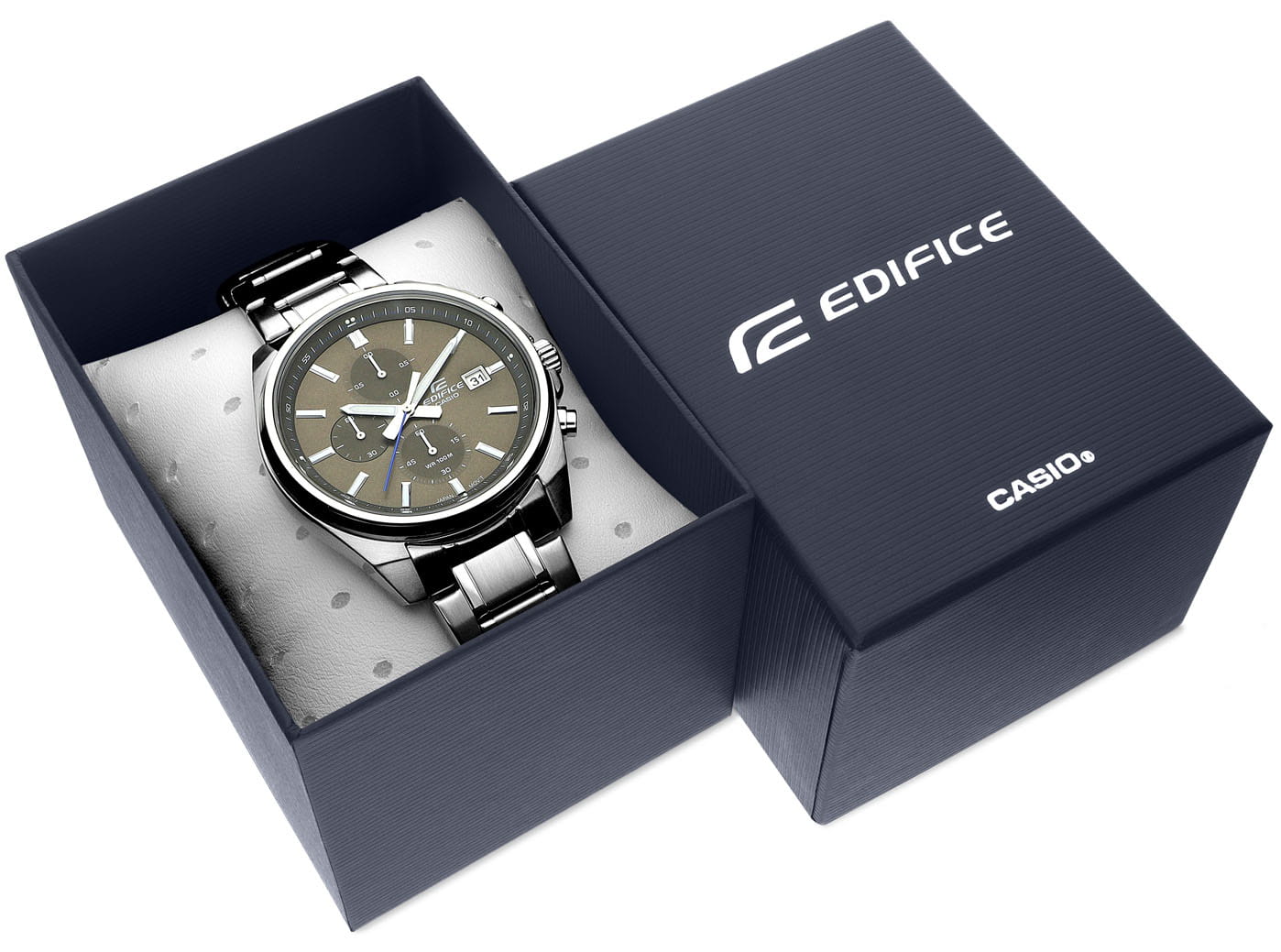 Японские мужские часы-хронографХронографФункция позволяет измерять отрезки времени с особой точностью: часы, минуты, секунды. Верным признаком хронографа является наличие на циферблате 3 дополнительных окошек-счётчиков. с секундомеромСекундомерСекундоме́р — прибор, способный измерять интервалы времени с точностью до долей секунды. Casio Edifice EFV-610D-5C, кварцевый механизм с высокой точностью. Класс водозащиты: 100 метров, позволит плавать, нырять и заниматься другими водными видами спорта. Корпус часов изготовлен из стали. Подсветка NeobriteПодсветка NeobriteИспользование светонакопительных составов на основе сульфида цинка или алюмината стронция, яркий свет можно наблюдать на протяжении 6-10 часов после «зарядки» часов около источника света. обеспечивает длительное послесвечение в темноте даже после кратковременного нахождения на свету. Часы-хронографХронографФункция позволяет измерять отрезки времени с особой точностью: часы, минуты, секунды. Верным признаком хронографа является наличие на циферблате 3 дополнительных окошек-счётчиков. с секундомеромСекундомерСекундоме́р — прибор, способный измерять интервалы времени с точностью до долей секунды. с точностью показаний 1/10с и временем измерения 1ч. Циферблат с метками в виде штрихов. Окошко даты находится в положении 3 часа. Задняя крышка с винтовым фиксатором. Батарея рассчитана на 3 года. Водонепроницаемость в соответствии с ISO 2281. Литой стальной браслет на раскладной застёжкеРаскладная застёжкаТакой тип застёжки используется только на браслетах из металла. Она никогда не раскрывается полностью, происходит разделение на 2 и более частей. Раскладывающая застёжка снизит вероятность потери часов к минимуму.. Предохранительная защелка на браслете препятствует случайному расстегиванию.