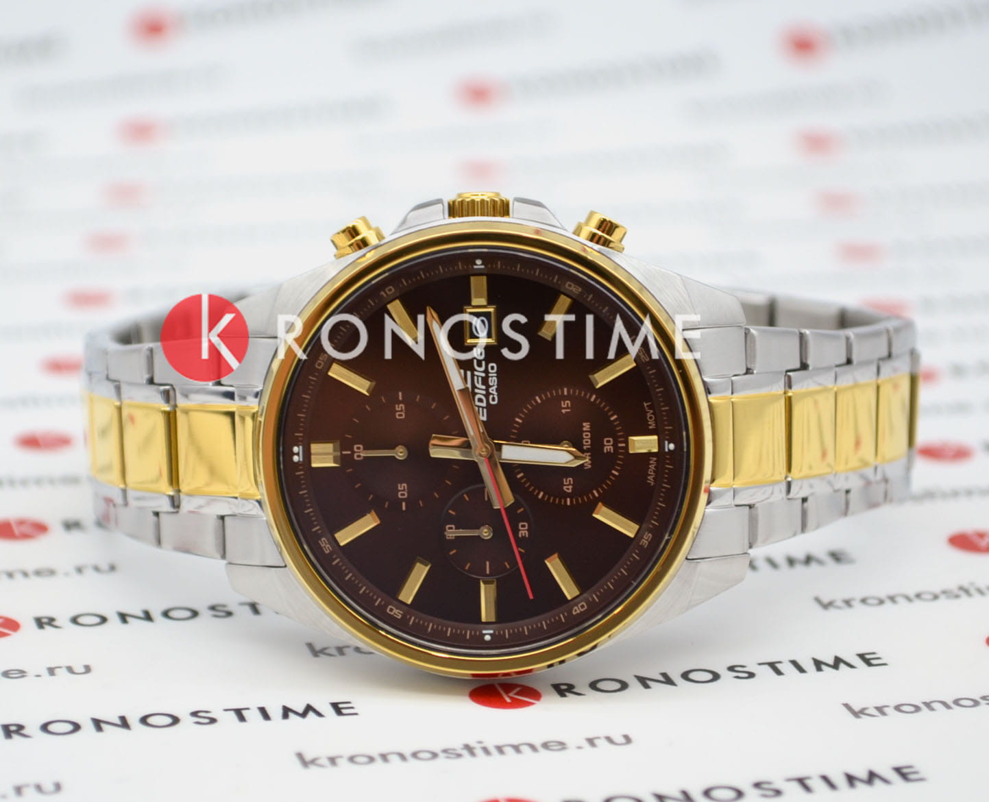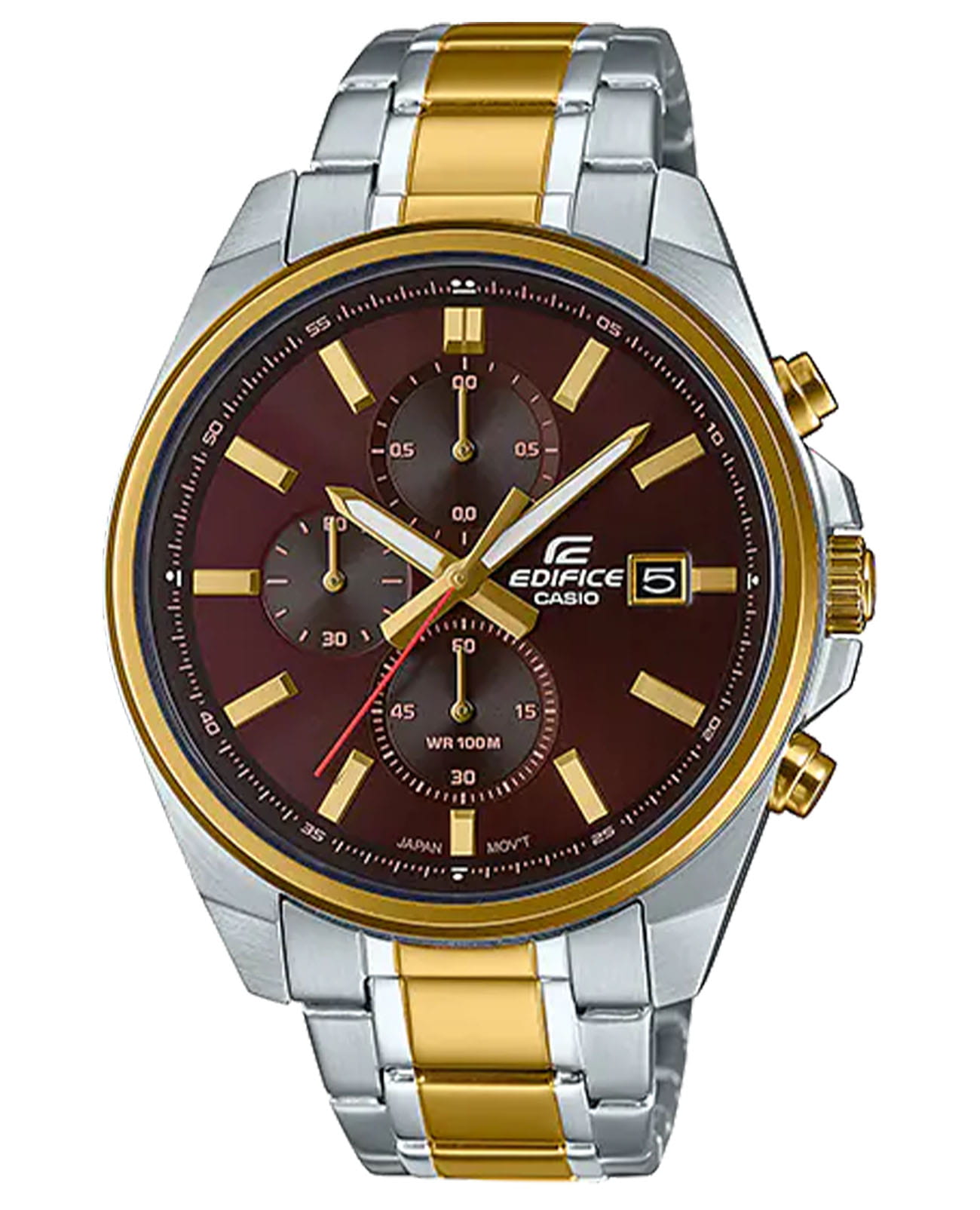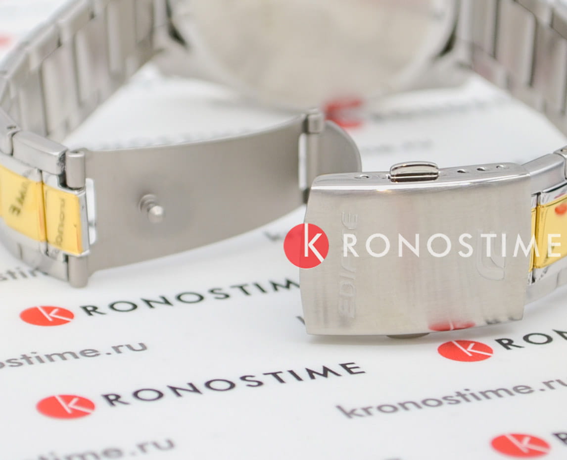 Японские мужские часы-хронографХронографФункция позволяет измерять отрезки времени с особой точностью: часы, минуты, секунды. Верным признаком хронографа является наличие на циферблате 3 дополнительных окошек-счётчиков. Casio Edifice EFV-610SG-5A, кварцевый механизм с высокой точностью. Класс водозащиты: 100 метров, позволит плавать, нырять и заниматься другими водными видами спорта. Корпус часов изготовлен из стали с IP-покрытиемIP-покрытиеМетод ионного напыления. Демонстрирует повышенную устойчивость к истиранию, окислению и химическим веществам. Под воздействием высокого давления и температуры около 1500°C молекулы металла надёжно соединяются с частицами корпуса часов.. Раскладная застёжкаРаскладная застёжкаТакой тип застёжки используется только на браслетах из металла. Она никогда не раскрывается полностью, происходит разделение на 2 и более частей. Раскладывающая застёжка снизит вероятность потери часов к минимуму. с фиксатором. Светонакопительное покрытие NeobriteПодсветка NeobriteИспользование светонакопительных составов на основе сульфида цинка или алюмината стронция, яркий свет можно наблюдать на протяжении 6-10 часов после «зарядки» часов около источника света. обеспечивает длительное послесвечение в темноте даже после кратковременного нахождения на свету. СекундомерСекундомерСекундоме́р — прибор, способный измерять интервалы времени с точностью до долей секунды. с разрешением показаний 1/10 сек и временем измерения 1 ч. Циферблат с окошком даты.