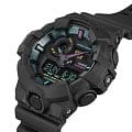 Перед вами редкие лимитированные джишоки 2024 года в черном матовом полимерном корпусе GA-700 с яркими неоновыми деталями циферблата! Практичная и функциональная модель в чёрном цвете имеет полимерный ударопрочный корпусУдаропрочный корпусМеханизм заключён в корпус, выполненный из современных материалов, устойчивых к ударам, механическим повреждениям и падению с высоты: инновационный пластик, карбон, нержавеющая сталь, титан., которому не страшны повреждения и падения с высоты. Высокоточный кварцевый механизм японского производства. Эксплуатационный срок батарейки - 5 лет. Яркая автоматическая светодиодная подсветкаСветодиодная подсветкаСветодиодная или LED-подсветка обеспечивает появление яркого холодного свечения за счёт LED-элементов - маленьких лампочек. Они потребляют минимальное количество энергии, чаще всего можно встретить 1 светодиод, в нижней части циферблата. белого цвета. Минеральное стеклоМинеральное стеклоМинеральное стекло представляет собой искусственно выращенный минерал кварца. Такое стекло отличается особой устойчивостью к повреждениям и царапинам. Уступает по некоторым качествам сапфировому стеклу. устойчивое к появлению царапин, обладающее высокой прозрачностью. Водонепроницаемость: 200 метров, позволит плавать, нырять и заниматься другими водными видами спорта. 12/24-часовая система отображения времени. Прочный пластиковый ремешок. ХронографХронографФункция позволяет измерять отрезки времени с особой точностью: часы, минуты, секунды. Верным признаком хронографа является наличие на циферблате 3 дополнительных окошек-счётчиков., секундомер, таймер, мировое времяМировое время Полезное часовое усложнение, отображающее время в основных городах и известных областях по всему миру, оно связано с часовыми поясами, удобно для путешественников и бизнесменов. , 5 будильников, UTCUTCВсемирное кординационное время, не имеющее привязки к географическому положению Гринвича, основывается на атомном отсчёте времени. Регулировка времени осуществляется более точно, чем устаревшее GMT.