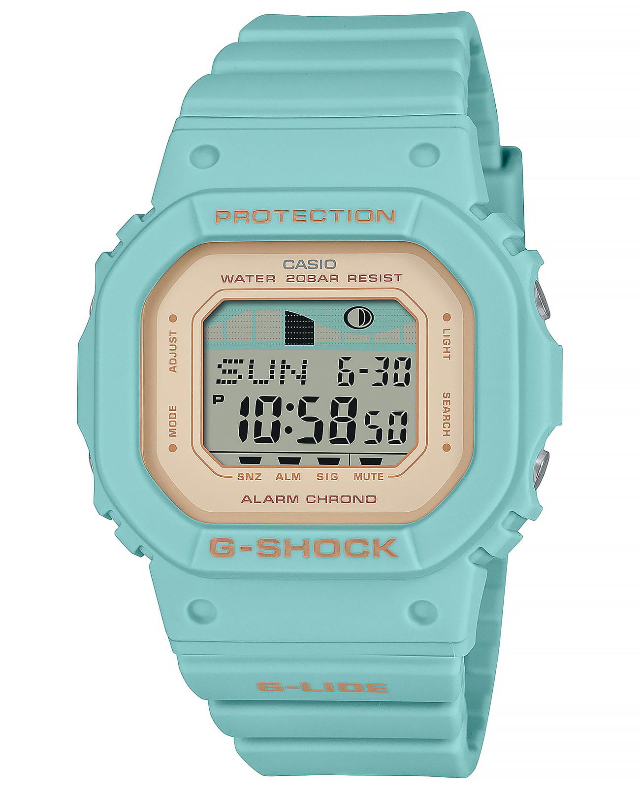 Японские мужские часы-хронографХронографФункция позволяет измерять отрезки времени с особой точностью: часы, минуты, секунды. Верным признаком хронографа является наличие на циферблате 3 дополнительных окошек-счётчиков. Casio G-Shock GLX-S5600-3 из коллекции G-Shock. Винтажная модель в новой цветовой гамме корпуса и ремешка понравится поклонникам серфинга. G-Lide. Модель часов создана на базе GLX-5600. Минеральное стеклоМинеральное стеклоМинеральное стекло представляет собой искусственно выращенный минерал кварца. Такое стекло отличается особой устойчивостью к повреждениям и царапинам. Уступает по некоторым качествам сапфировому стеклу. устойчивое к появлению царапин, обладающее высокой прозрачностью. Ударопрочный корпусУдаропрочный корпусМеханизм заключён в корпус, выполненный из современных материалов, устойчивых к ударам, механическим повреждениям и падению с высоты: инновационный пластик, карбон, нержавеющая сталь, титан. защищает механизм от ударов и вибрации. Электролюминесцентная подсветкаЭлектролюминесцентная подсветкаЭлектролюминесцентная панель устанавливается под ЖК-экраном часов, при нажатии кнопки электричество преобразуется в свет за счёт подачи напряжения на атомы фосфора, такой тип подсветки позволяет освещать весь циферблат. освещает весь циферблат. Мировое времяМировое время Полезное часовое усложнение, отображающее время в основных городах и известных областях по всему миру, оно связано с часовыми поясами, удобно для путешественников и бизнесменов. – 48 городов (29 часовых поясов). СекундомерСекундомерСекундоме́р — прибор, способный измерять интервалы времени с точностью до долей секунды. с точностью измерения 1/100 секунды и измерением до 23 часов 59 минут 59,99 cек. ТаймерТаймерОтсчитывает секунды в обратном направлении в заданном интервале времени. обратного отсчета (диапазон времени 24 часа), автоматический календарь, 12/24 отображение времени. 3 будильникаБудильникБуди́льник — часы, в заданный момент времени подающие звуковой, световой и/или в редких случаях другой сигнал., один с функцией Snooze, ежечасный сигнал. Отображение возраста и фазы Луны. Графическое отображение сведений о приливах и отливах на заданную дату и время. Класс водозащиты: 200 метров, позволит плавать, нырять и заниматься другими водными видами спорта. Ремешок из полимерного материала на стандартной застежке.