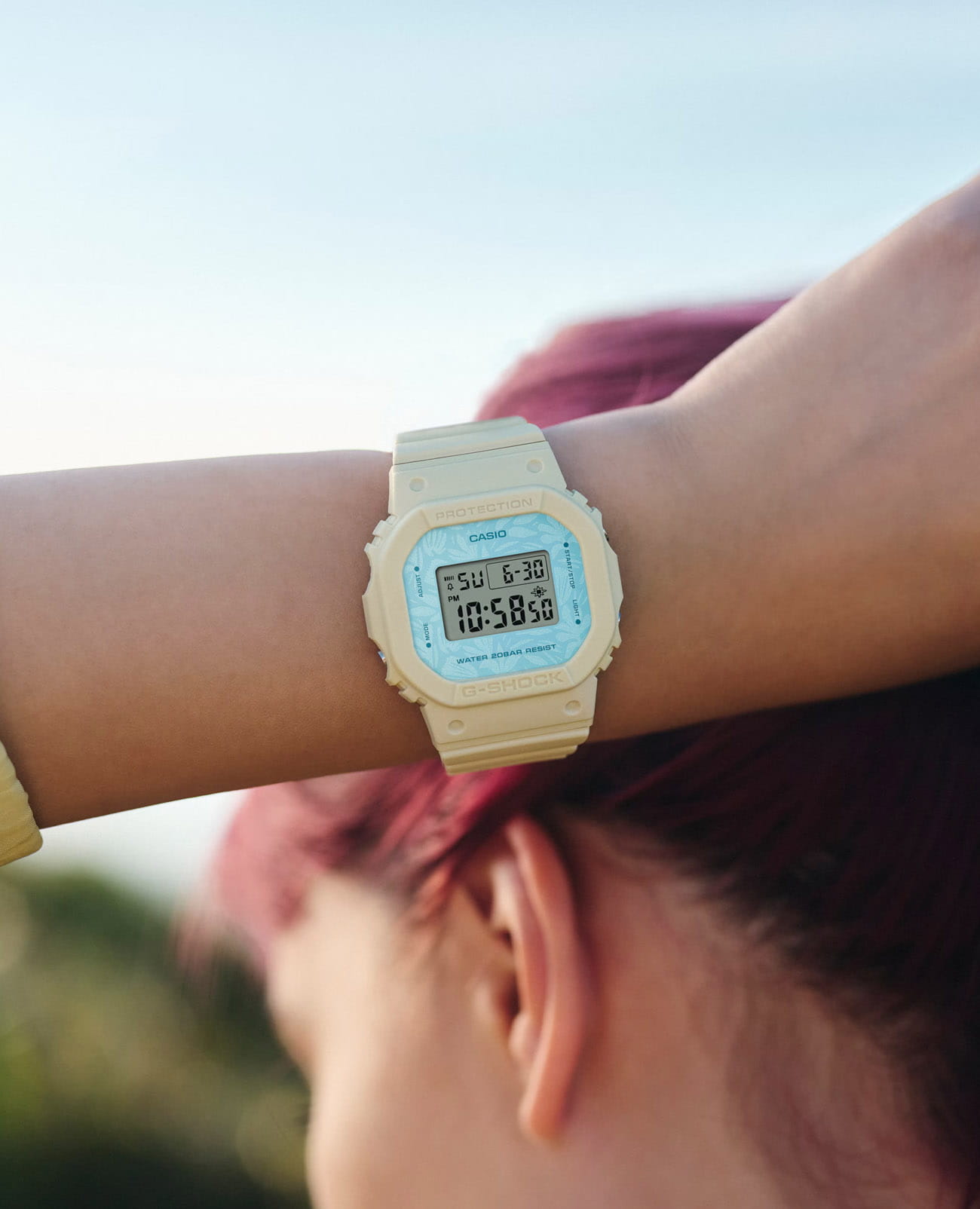Японские женские часы Casio G-Shock GMD-S5600NC-9ER из коллекции G-Shock. Окунитесь в целебный комфорт природы с настоящим G-SHOCK в цветах, вдохновленных флорой, и с ботаническим дизайном. Основные компоненты изготовлены из биопластика, полученных из возобновляемых органических ресурсов. Ожидается, что этот материал поможет снизить выбросы CO2 и иным образом снизить воздействие на окружающую среду. Минеральное стеклоМинеральное стеклоМинеральное стекло представляет собой искусственно выращенный минерал кварца. Такое стекло отличается особой устойчивостью к повреждениям и царапинам. Уступает по некоторым качествам сапфировому стеклу. устойчивое к появлению царапин, обладающее высокой прозрачностью. Ударопрочный корпусУдаропрочный корпусМеханизм заключён в корпус, выполненный из современных материалов, устойчивых к ударам, механическим повреждениям и падению с высоты: инновационный пластик, карбон, нержавеющая сталь, титан. защищает механизм от ударов и вибрации. Светодиодная подсветкаСветодиодная подсветкаСветодиодная или LED-подсветка обеспечивает появление яркого холодного свечения за счёт LED-элементов - маленьких лампочек. Они потребляют минимальное количество энергии, чаще всего можно встретить 1 светодиод, в нижней части циферблата., настраиваемое послесвечение 1,5 или 3сек. СекундомерСекундомерСекундоме́р — прибор, способный измерять интервалы времени с точностью до долей секунды. с точностью измерения 1/100 секунды и измерением до 23 часов 59 минут 59,99 cек. ТаймерТаймерОтсчитывает секунды в обратном направлении в заданном интервале времени. обратного отсчета (диапазон времени 24 часа), вечный календарьВечный календарьКлассическое часовое усложнение, представляющее собой календарь, рассчитанный на несколько лет вперёд (стандартно – до 2099 года). Определяет текущую дату, день недели, месяц., 12/24 отображение времени. 5 будильниковБудильникБуди́льник — часы, в заданный момент времени подающие звуковой, световой и/или в редких случаях другой сигнал., ежечасный сигнал. Класс водозащиты: 200 метров, позволит плавать, нырять и заниматься другими водными видами спорта. Ремешок из полимерного материала на стандартной застежке.