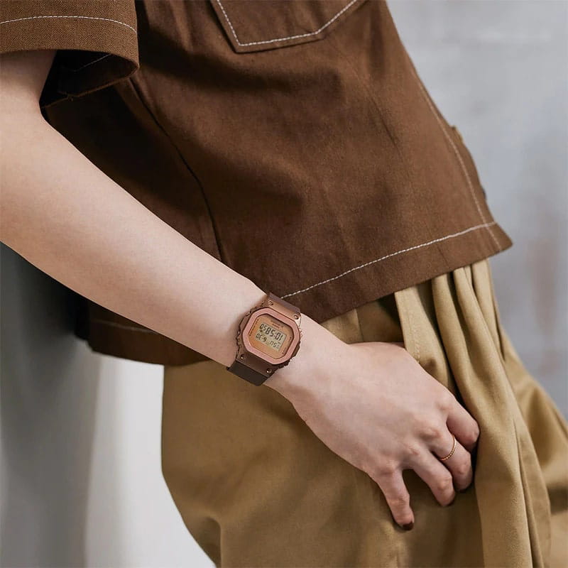 Японские женские часы c хронографомХронографФункция позволяет измерять отрезки времени с особой точностью: часы, минуты, секунды. Верным признаком хронографа является наличие на циферблате 3 дополнительных окошек-счётчиков. Casio G-Shock GM-S5600UBR-5DR (GM-S5600UBR-5) из коллекции G-Shock - это практичный и стильный аксессуар с множеством полезных функций. Наручные часы понравятся своим сдержанным и одновременно привлекательным дизайном. Корпус часов изготовлен из нержавеющей стали с IP-покрытиемIP-покрытиеМетод ионного напыления. Демонстрирует повышенную устойчивость к истиранию, окислению и химическим веществам. Под воздействием высокого давления и температуры около 1500°C молекулы металла надёжно соединяются с частицами корпуса часов. и прочного пластика. На компактном циферблате отображается время в 12- и 24-часовом форматах. Есть автоматический вечный календарьВечный календарьКлассическое часовое усложнение, представляющее собой календарь, рассчитанный на несколько лет вперёд (стандартно – до 2099 года). Определяет текущую дату, день недели, месяц. с текущей датой. Благодаря люминесцентной подсветкеЛюминесцентное покрытиеПозволяет считывать показания времени в темноте. Производители наносят на стрелки, часовые индексы, безель или поверхность циферблата светонакопительный состав, дающий холодное свечение., считывать информацию в темноте не составит труда. Есть таймерТаймерОтсчитывает секунды в обратном направлении в заданном интервале времени. с автоматическим повтором. СекундомерСекундомерСекундоме́р — прибор, способный измерять интервалы времени с точностью до долей секунды. измеряет прошедшее время с двумя точностями показаний: 1/100с и 1с. Тип механизма - кварцевый. Ударопрочный корпусУдаропрочный корпусМеханизм заключён в корпус, выполненный из современных материалов, устойчивых к ударам, механическим повреждениям и падению с высоты: инновационный пластик, карбон, нержавеющая сталь, титан. защищает механизм от ударов и вибрации.