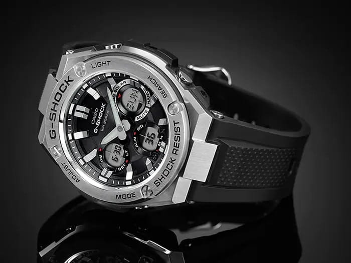 Противоударные, спортивные мужские часы в серии G-STEEL в стальном корпусе Casio G-Shock GST-S110-1ADR (GST-S110-1A), электронный механизм с высокой точностью. Класс водозащиты: 200 метров, позволит плавать, нырять и заниматься другими водными видами спорта. Корпус часов изготовлен из стали, разноцветного цвета.