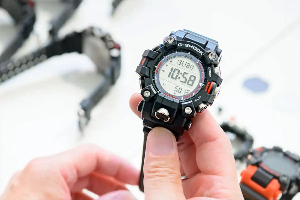Линейка часов Master of G создана для настоящих мужчин, для которых экстрим и приключения это не просто слова. Мужские японские часы-хронографХронографФункция позволяет измерять отрезки времени с особой точностью: часы, минуты, секунды. Верным признаком хронографа является наличие на циферблате 3 дополнительных окошек-счётчиков. с секундомеромСекундомерСекундоме́р — прибор, способный измерять интервалы времени с точностью до долей секунды. Casio G-Shock GW-9500-1, кварцевый механизм с высокой точностью. Класс водозащиты: 200 метров, позволит плавать, нырять и заниматься другими водными видами спорта. Корпус часов изготовлен из пластика. Часы Master Of G Mudman спроектированы и разработаны специально для работы в суровых условиях. Корпус и ремешок выполнены из биопластика, который изготавливается из возобновляемых органических ресурсов. Питание от солнечной энергии Tough SolarTough SolarТехнология основана на подзарядке аккумулятора от источника солнечного света, специальная панель улавливает солнечные лучи и преобразует их в энергию для работы часов. Достаточно пары минут нахождения на солнце для функционирования часов в течении суток. - солнечные батарейки большой мощности, индикатор низкого заряда батареи. Функция автоматического сохранения энергии. Время работы аккумулятора без подзарядки до 6 месяцев, при включенной функции сохранения энергии до 26 месяцев. Структура Carbon Core GuardCarbon Core Guard Новейшая структура корпуса, разработанная Casio. Полиуретановая пластина дополнительно усилена карбоновыми вставками, что придаёт специальную защиту от механических повреждений. Карбон отличается лёгкостью и прочностью.. Ударопрочный корпусУдаропрочный корпусМеханизм заключён в корпус, выполненный из современных материалов, устойчивых к ударам, механическим повреждениям и падению с высоты: инновационный пластик, карбон, нержавеющая сталь, титан. с карбоновыми волокнами более прочный и, в то же время, более легкий. Этот же материал защищает внутренний модуль от повреждений и деформаций при ударах. Защита от попадания внутрь пыли и грязи. Модуль часов рассчитан на работу при низких температурах до -10°С/14°F. Циферблат подсвечивается светодиодом. Настраиваемое послесвечение 1,5 или 3сек. Цвет подсветки: белый. 12-ти и 24-х часовой формат времени. Секундомер с точностью показаний 1/10с и временем измерения 1000ч. Сплит-хронографСплит-хронографИспользуется для измерения продолжительности нескольких временных отрезков, начинающихся одновременно, а заканчивающихся в разное время.. ТаймерТаймерОтсчитывает секунды в обратном направлении в заданном интервале времени. обратного отсчета времени от 1мин до 24ч. Мировое времяМировое время Полезное часовое усложнение, отображающее время в основных городах и известных областях по всему миру, оно связано с часовыми поясами, удобно для путешественников и бизнесменов. – 48 городов (31 часовой пояс), всемирное координированное время (UTCUTCВсемирное кординационное время, не имеющее привязки к географическому положению Гринвича, основывается на атомном отсчёте времени. Регулировка времени осуществляется более точно, чем устаревшее GMT.