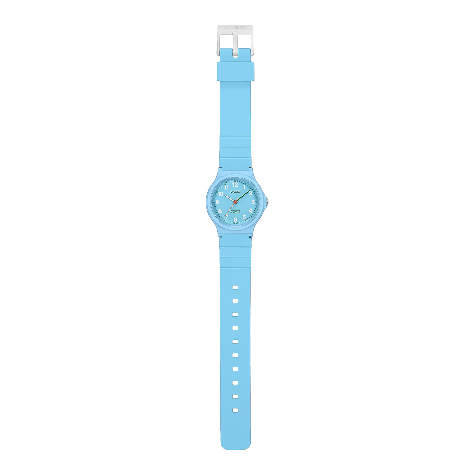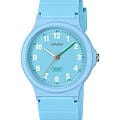 Комфортные наручные часы от Casio выполнены из высокопрочных полимерных материалов. На голубом циферблате традиционной формы расположены отчетливые арабские цифры. Тип механизма - кварцевый. Срок службы батарейки составляет 3 года. Благодаря небольшому весу в 17 грамм, аксессуар не будет создавать ощущения тяжести на руке. Класс водозащиты: 30 метров, позволит защитить корпус от случайных брызг или капель дождя.