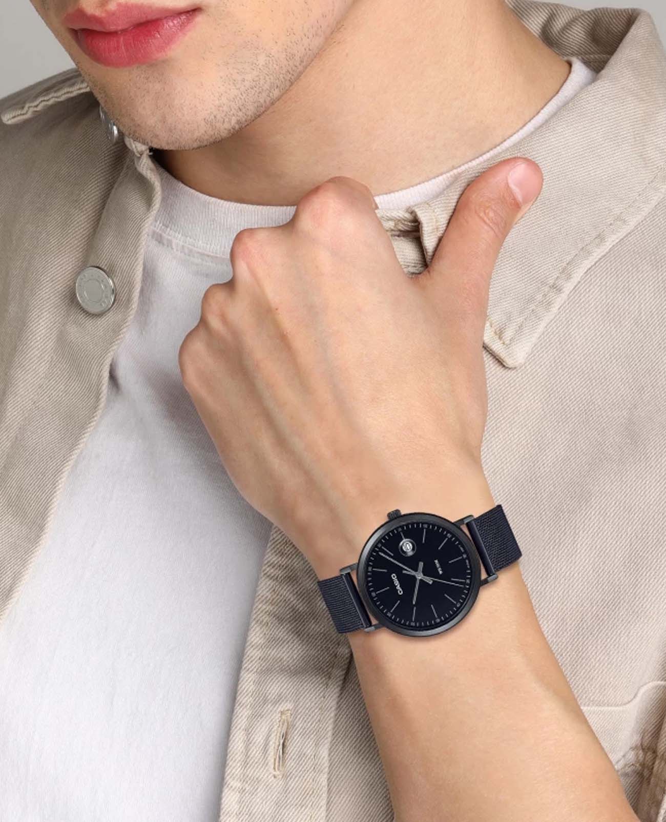 Японские мужские часы с минеральным стекломМинеральное стеклоМинеральное стекло представляет собой искусственно выращенный минерал кварца. Такое стекло отличается особой устойчивостью к повреждениям и царапинам. Уступает по некоторым качествам сапфировому стеклу. Casio Collection MTP-E175MB-1E, кварцевый механизм с высокой точностью. Корпус часов изготовлен из стали с IP-покрытиемIP-покрытиеМетод ионного напыления. Демонстрирует повышенную устойчивость к истиранию, окислению и химическим веществам. Под воздействием высокого давления и температуры около 1500°C молекулы металла надёжно соединяются с частицами корпуса часов.. Метки в виде штрихов. Окошко даты находится в положении 3 часа. Рифленая заводная головка. Класс водозащиты: 50 метров, позволит защитить корпус от случайных брызг или капель дождя. Стальной браслет миланского плетения с IP-покрытиемIP-покрытиеМетод ионного напыления. Демонстрирует повышенную устойчивость к истиранию, окислению и химическим веществам. Под воздействием высокого давления и температуры около 1500°C молекулы металла надёжно соединяются с частицами корпуса часов. на раскладном замкеРаскладной замокДанный вариант застежки используется только на часах с металлическим браслетом. Отличительная особенность такого крепления в том, что длина браслета становится универсальной и вы можете самостоятельно отрегулировать нужный вам размер – застежка просто двигается по браслету часов..