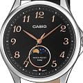 Японские мужские часы с минеральным стекломМинеральное стеклоМинеральное стекло представляет собой искусственно выращенный минерал кварца. Такое стекло отличается особой устойчивостью к повреждениям и царапинам. Уступает по некоторым качествам сапфировому стеклу. Casio Collection MTP-M110L-1A, кварцевый механизм с высокой точностью. Изысканный корпус часов изготовлен из стали серебристого цвета, что обеспечивает долговечность и утончённый внешний вид. Циферблат с метками в виде арабских цифр с отображением фаз Луны в положении 6 часов. Заводная головка с защитой. Батарейка рассчитана на 3 года. Класс водозащиты: 50 метров, позволит защитить корпус от случайных брызг или капель дождя. Изысканный кожаный ремешок на стандартной застёжке гармонично дополняет корпус и обеспечивает комфортное ношение. Эти часы подойдут для повседневного ношения и станут ярким акцентом в вашем наряде.
