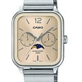 Японские мужские кварцевые часы с минеральным стекломМинеральное стеклоМинеральное стекло представляет собой искусственно выращенный минерал кварца. Такое стекло отличается особой устойчивостью к повреждениям и царапинам. Уступает по некоторым качествам сапфировому стеклу. Casio Collection MTP-M305D-9AVDF (MTP-M305D-9A), кварцевый механизм с высокой точностью. Корпус часов изготовлен из нержавеющей стали. Циферблат с метками в виде штрихов. Особенностью модели является наличие индикатора фазы луны над шестью часами по циферблату. Индикатор имеет 4 положения и отображается новолуние и полнолуние, а также растущую и убывающую Луну. Батарейка рассчитана на 3 года. Класс водозащиты: 50 метров, позволит защитить корпус от случайных брызг или капель дождя. Стальной браслет на раскладной застёжкеРаскладная застёжкаТакой тип застёжки используется только на браслетах из металла. Она никогда не раскрывается полностью, происходит разделение на 2 и более частей. Раскладывающая застёжка снизит вероятность потери часов к минимуму..