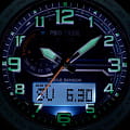 Любое ваше путешествие выйдет на новый уровень благодаря этим часам из коллекции Pro Trek. Casio Pro Trek PRG-601YB-2 для активного отдыха. Корпус и ремешок выполнены из биопластика, который изготавливается из возобновляемых органических ресурсов. Питание от солнечной энергии Tough SolarTough SolarТехнология основана на подзарядке аккумулятора от источника солнечного света, специальная панель улавливает солнечные лучи и преобразует их в энергию для работы часов. Достаточно пары минут нахождения на солнце для функционирования часов в течении суток. - солнечные батарейки большой мощности, индикатор заряда батареи. Функция автоматического сохранения энергии. Время работы аккумулятора без подзарядки приблизительно 7 месяцев, при включенной функции сохранения энергии приблизительно 25 месяцев. Модуль часов рассчитан на работу при низких температурах до -10°С/14°F. Двойная подcветка: циферблат и ЖК-дисплеи подсвечиваются светодиодом, благодаря наличию функции задержки, после отпускания кнопки освещение горит еще несколько секунд. Настраиваемое послесвечение 1,5 или 3сек. Цвет подсветки: белый. Необритовое покрытиеПодсветка NeobriteИспользование светонакопительных составов на основе сульфида цинка или алюмината стронция, яркий свет можно наблюдать на протяжении 6-10 часов после «зарядки» часов около источника света. обеспечивает длительное послесвечение в темноте даже после кратковременного нахождения на свету. 12-ти и 24-х часовой формат времени. СекундомерСекундомерСекундоме́р — прибор, способный измерять интервалы времени с точностью до долей секунды. с точностью показаний 1/100с и временем измерения 24ч. Сплит-хронографСплит-хронографИспользуется для измерения продолжительности нескольких временных отрезков, начинающихся одновременно, а заканчивающихся в разное время.. ТаймерТаймерОтсчитывает секунды в обратном направлении в заданном интервале времени. обратного отсчета от 1с до 1ч. Мировое времяМировое время Полезное часовое усложнение, отображающее время в основных городах и известных областях по всему миру, оно связано с часовыми поясами, удобно для путешественников и бизнесменов. – 29 городов (29 часовых поясов), всемирное координированное время (UTC). Функция включения/отключения летнего времени. Функция автоматической коррекции положения стрелок проверяет положение стрелок каждый час и корректирует его в случае необходимости. Технология Triple Sensor позволяет точно и легко определять сторону света, температуру и атмосферное давление. Термометр от -10° до +60°С с точностью 0,1°C. Барометр - измерение атмосферного давления от 260 до 1100 гПа (от 195 до 825 мм рт. ст.). Встроенный цифровой компас. Диапазон измерения от 0° до 359° с точностью 1°. Высотомер - встроенный датчик барометрического давления с возможностью вывода результатов в единицах высоты над уровнем моря (от -700 до 10000 метров). График набора высоты. Хранение до 30 записей о высотных точках рельефа местности - измеренной абсолютной высоты, даты и времени. Система Smart Access с помощью электронной заводной головки обеспечивает простой и удобный доступ ко всем важным функциям часов. Нажатие или поворот заводной головки позволяет переключаться между различными режимами и активировать будильникБудильникБуди́льник — часы, в заданный момент времени подающие звуковой, световой и/или в редких случаях друго