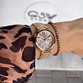 Циферблат с кристаллами, защиненный минеральным стекломМинеральное стеклоМинеральное стекло представляет собой искусственно выращенный минерал кварца. Такое стекло отличается особой устойчивостью к повреждениям и царапинам. Уступает по некоторым качествам сапфировому стеклу., идеально смотрится в сочетании с цветом розового золота, такой оттенок был получен благодаря нанесению IP-покрытияIP-покрытиеМетод ионного напыления. Демонстрирует повышенную устойчивость к истиранию, окислению и химическим веществам. Под воздействием высокого давления и температуры около 1500°C молекулы металла надёжно соединяются с частицами корпуса часов.. В качестве декорирующих элементов использованы оригинальные кристаллы Swarovski с роскошным сиянием. Корпус и браслет выполнены из долговечной стали. циферблат защинен минеральным стекломМинеральное стеклоМинеральное стекло представляет собой искусственно выращенный минерал кварца. Такое стекло отличается особой устойчивостью к повреждениям и царапинам. Уступает по некоторым качествам сапфировому стеклу.. 12-ти и 24-х часовой формат времени и число вынесены на отдельные циферблаты.