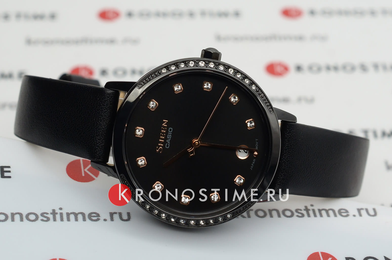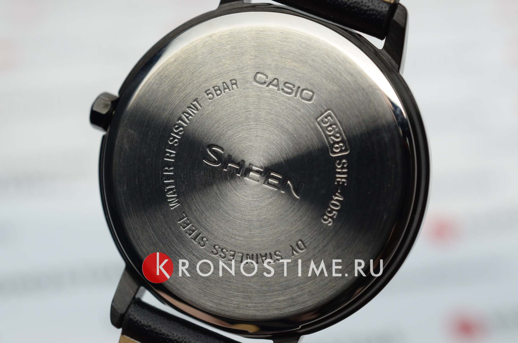 Японские женские часы с минеральным стекломМинеральное стеклоМинеральное стекло представляет собой искусственно выращенный минерал кварца. Такое стекло отличается особой устойчивостью к повреждениям и царапинам. Уступает по некоторым качествам сапфировому стеклу. Casio Sheen SHE-4056BL-1A, кварцевый механизм с высокой точностью. Класс водозащиты: 50 метров, позволит защитить корпус от случайных брызг или капель дождя. Корпус часов изготовлен из стали с IP-покрытиемIP-покрытиеМетод ионного напыления. Демонстрирует повышенную устойчивость к истиранию, окислению и химическим веществам. Под воздействием высокого давления и температуры около 1500°C молекулы металла надёжно соединяются с частицами корпуса часов..