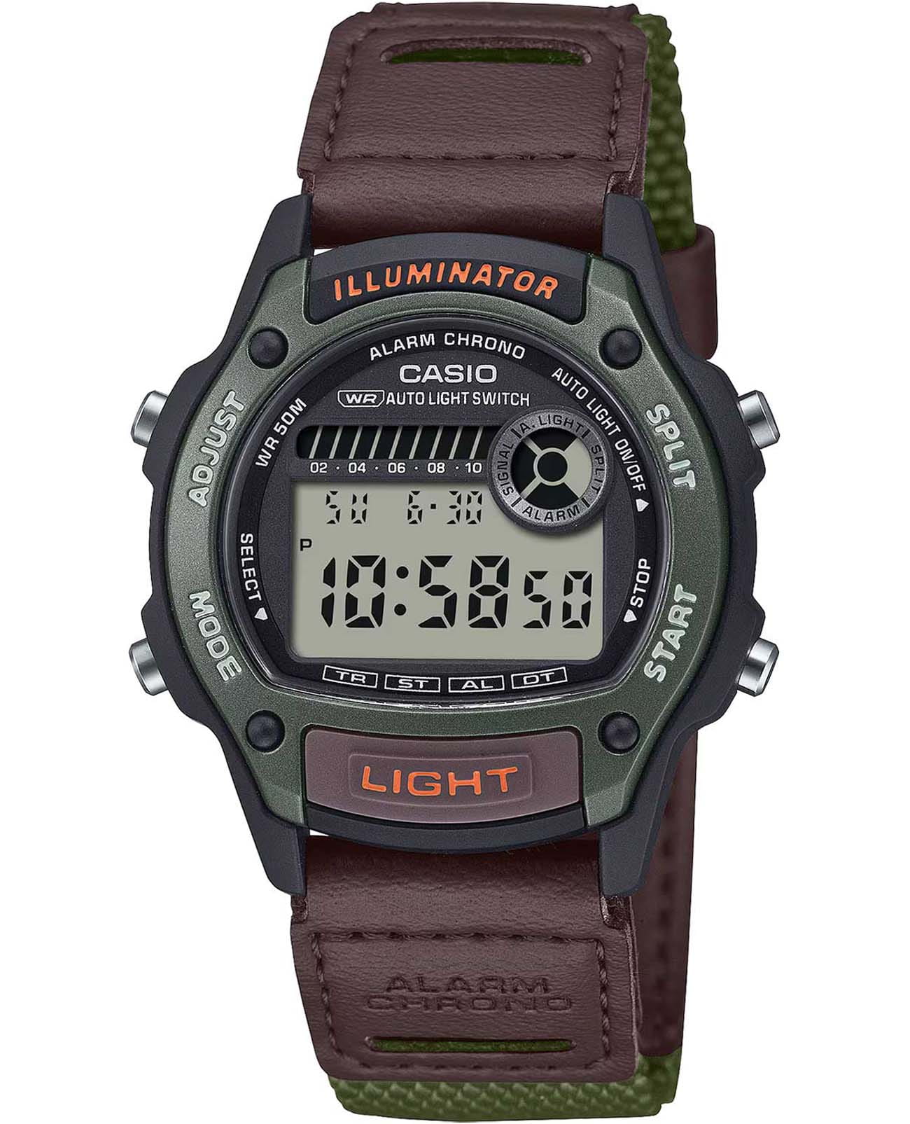 Спортивные японские мужские часы-хронографХронографФункция позволяет измерять отрезки времени с особой точностью: часы, минуты, секунды. Верным признаком хронографа является наличие на циферблате 3 дополнительных окошек-счётчиков. Casio Collection W-220HF-3A, кварцевый механизм с высокой точностью, органическое стекло. Изысканный корпус часов изготовлен из пластика. Светодиодная подсветкаСветодиодная подсветкаСветодиодная или LED-подсветка обеспечивает появление яркого холодного свечения за счёт LED-элементов - маленьких лампочек. Они потребляют минимальное количество энергии, чаще всего можно встретить 1 светодиод, в нижней части циферблата. освещает весь циферблат. Цвет подсветки: оранжевый. 12-ти и 24-х часовой формат времени. СекундомерСекундомерСекундоме́р — прибор, способный измерять интервалы времени с точностью до долей секунды. с точностью показаний 1/100с и временем измерения 24 ч. Сплит-хронографСплит-хронографИспользуется для измерения продолжительности нескольких временных отрезков, начинающихся одновременно, а заканчивающихся в разное время.. Функция второго часового поясаВторой часовой поясФункция, позволяющая отображать время двух часовых поясов одновременно., а также таймераТаймерОтсчитывает секунды в обратном направлении в заданном интервале времени., что делает часы функциональными. Батарейка рассчитана на 3 года. Класс водозащиты: 50 метров, позволит защитить корпус от случайных брызг или капель дождя. Ремешок тканевый с кожаными вставками, который изготавливается из возобновляемых органических ресурсов. Модель подчёркивает индивидуальность владельца и идеально подходит для повседневного образа. Лимитированная серия.