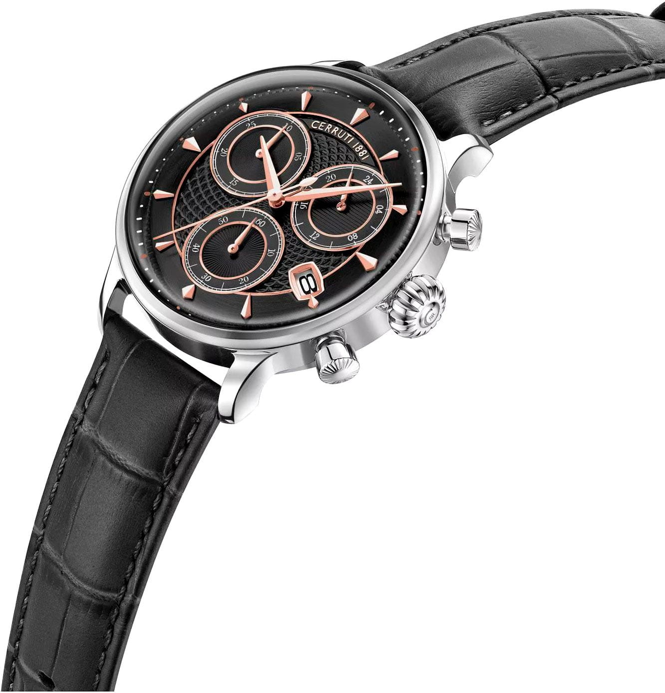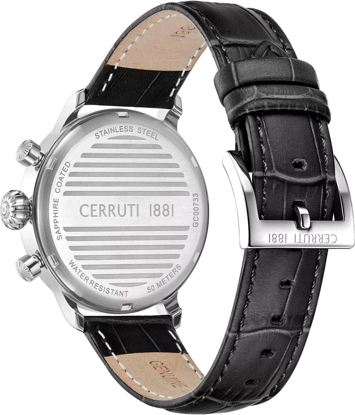 Cerruti 1881 CIWGC0073301— элегантные мужские часы, сочетающие классическую форму корпуса с выразительной спортивной функциональностью. На рельефном циферблате расположены три дополнительных индикатора хронографаХронографФункция позволяет измерять отрезки времени с особой точностью: часы, минуты, секунды. Верным признаком хронографа является наличие на циферблате 3 дополнительных окошек-счётчиков. и окошко даты в положении «4 часа». Корпус из нержавеющей стали подчёркивает солидность модели, а контрастные акценты на стрелках и метках придают ей изысканный характер. Стекло минеральноеМинеральное стеклоМинеральное стекло представляет собой искусственно выращенный минерал кварца. Такое стекло отличается особой устойчивостью к повреждениям и царапинам. Уступает по некоторым качествам сапфировому стеклу. обеспечивает надёжную защиту от царапин. Кожаный ремешок с классической прострочкой дополняет образ и фиксируется удобной стандартной застежкой. Эта модель удачно объединяет традиционную утончённость и современную энергию, подойдя как к деловому, так и повседневному стилю.