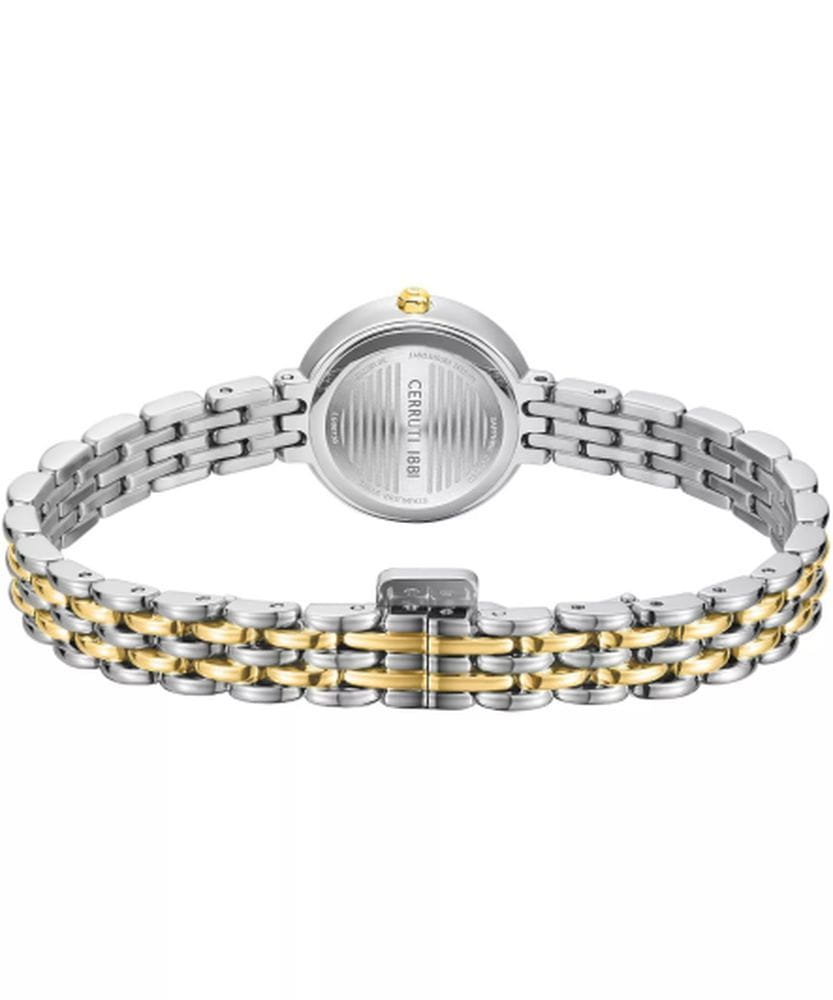 Cerruti 1881 CIWLG0073005 — изысканные женские часы, созданные в лучших традициях итальянской элегантности. Круглый корпус из нержавеющей стали и сияющим безелемБезельВнешний ободок, закрепляющий стекло. В спортивных часах так называется поворотное кольцо с делениями на циферблате, выполняет роль таймера – замеряет отрезки времени на шкале. Неподвижный безель – элемент декора. Однонаправленно вращающийся безель на дайверских часах позволяет фиксировать моменты погружения и выныривания на поверхность. с IP-покрытиемIP-покрытиеМетод ионного напыления. Демонстрирует повышенную устойчивость к истиранию, окислению и химическим веществам. Под воздействием высокого давления и температуры около 1500°C молекулы металла надёжно соединяются с частицами корпуса часов. , украшенным кристаллами, придаёт модели утончённый и праздничный вид. Глубокий циферблат с солнечным переливом оформлен лаконично и стильно: миниатюрные метки в виде кристаллов подчёркивают ювелирный характер аксессуара. Прочное минеральное стеклоМинеральное стеклоМинеральное стекло представляет собой искусственно выращенный минерал кварца. Такое стекло отличается особой устойчивостью к повреждениям и царапинам. Уступает по некоторым качествам сапфировому стеклу. защищает поверхность от царапин, а металлический браслет с частичным IP-покрытиемIP-покрытиеМетод ионного напыления. Демонстрирует повышенную устойчивость к истиранию, окислению и химическим веществам. Под воздействием высокого давления и температуры около 1500°C молекулы металла надёжно соединяются с частицами корпуса часов. полированными звеньями оснащён застёжкой «бабочка»Застёжка "бабочка"Такой вид застёжки дополняется предохранителями, помогающими избежать случайного раскрытия браслета. Обладают изящным исполнением. , обеспечивающей комфортное прилегание и надёжную фиксацию. Cerruti 1881 — это воплощение женственности и роскоши, идеально подходящее для тех, кто ценит утончённый стиль и блеск итальянской моды.
