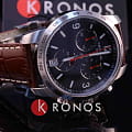 Элегантный хронографХронографФункция позволяет измерять отрезки времени с особой точностью: часы, минуты, секунды. Верным признаком хронографа является наличие на циферблате 3 дополнительных окошек-счётчиков. с коричневым ремешком из натуральной кожи идеально завершит образ делового мужчины. Швейцарский кварцевый калибр ETA G10.211 измеряет время с высокой точностью хода. Стрелки имеют люминесцентное покрытиеЛюминесцентное покрытиеПозволяет считывать показания времени в темноте. Производители наносят на стрелки, часовые индексы, безель или поверхность циферблата светонакопительный состав, дающий холодное свечение.. Функции: секундомер, EOLEOLПредставляет собой систему, уведомляющую владельца часов о необходимости замены элемента питания. За 2 недели до полного разряда батарейки секундная стрелка перестаёт ходить чётко и начинает перепрыгивать на 3-4 деления., дата, тахиметрТахиметрРазмеченная шкала, располагается на ободке или безеле часов. Тахиметр позволяет рассчитать скорость на определённом участке пути, расстояние измеряется в километрах или милях..