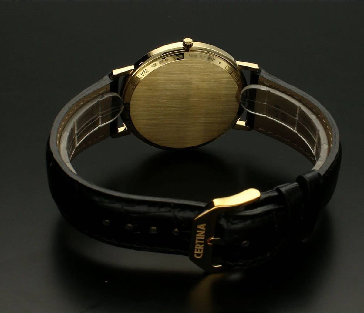 Корпус изготовлен из 18-каратного золота18-каратное золотоОбозначение по каратной системе пробирования, оно показывает, сколько драгоценного металла содержится в изделии. 18 карат - в составе 75% чистого золота, соответствует 750 пробе.