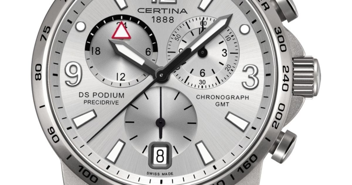 Модель обладает полезным функционалом: хронографХронографФункция позволяет измерять отрезки времени с особой точностью: часы, минуты, секунды. Верным признаком хронографа является наличие на циферблате 3 дополнительных окошек-счётчиков., секундомер, GMTGMTОтображение времени второго часового пояса.Такая функция особенно актуальна для путешественников и бизнесменов,которые общаются с людьми из разных стран,теперь вы всегда будете знать,какой час у вашего партнёра или близкого человека., календарь, тахиметрТахиметрРазмеченная шкала, располагается на ободке или безеле часов. Тахиметр позволяет рассчитать скорость на определённом участке пути, расстояние измеряется в километрах или милях.. Швейцарский кварцевый калибр G10.962 BF Precidrive™Precidrive™Инновационный кварцевый механизм Certina. Часы, оснащённые этим швейцарским калибром, приравниваются к точности к сертифицированным хронометрам, точность хода составляет +/-10 секунд в год.. Сверхлёгкий алюминиевый корпус. Каучуковый ремешок. Сапфировое стекло. Люминесцентная подсветкаЛюминесцентное покрытиеПозволяет считывать показания времени в темноте. Производители наносят на стрелки, часовые индексы, безель или поверхность циферблата светонакопительный состав, дающий холодное свечение..