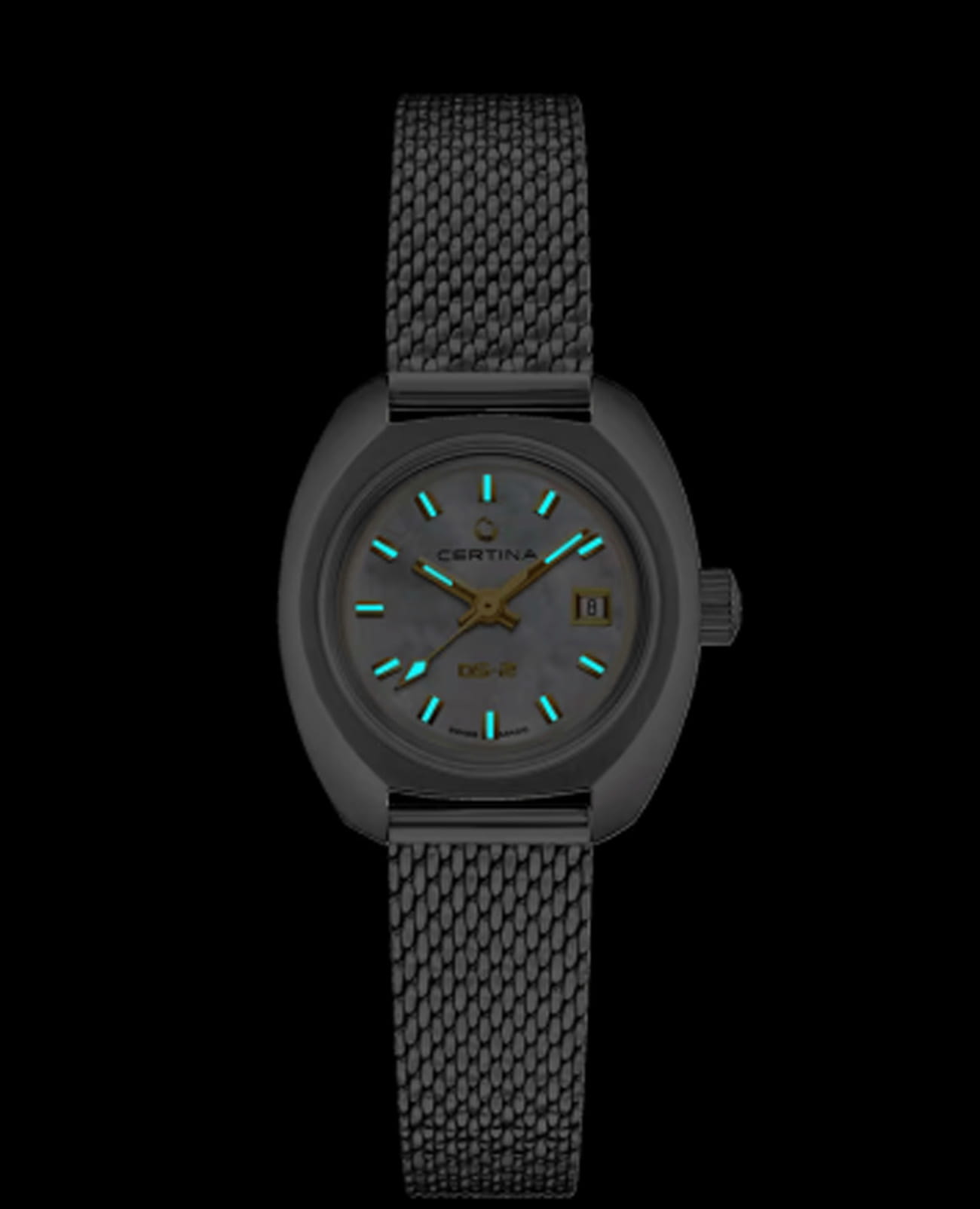 Женские швейцарские механические часы с автоподзаводом Certina DS-2 C0242071111100. Сапфировое стеклоСапфировое стеклоПрочный и надёжный материал из кристалла сапфира синтетического происхождения, характеризующийся особой твёрдостью и устойчивостью к царапинам и повреждениям. устойчивое к появлению царапин, обладающее высокой прозрачностью. Корпус изготовлен из нержавеющей стали. Стрелки с люминесцентным покрытиемЛюминесцентное покрытиеПозволяет считывать показания времени в темноте. Производители наносят на стрелки, часовые индексы, безель или поверхность циферблата светонакопительный состав, дающий холодное свечение. Superluminova. Окошко даты находится в положении 3 часа. Класс водозащиты: 100 метров, позволит плавать, нырять и заниматься другими водными видами спорта. Стальной браслет с частичным миланским плетением на застёжке-бабочке с кнопкамиЗастёжка "бабочка"Такой вид застёжки дополняется предохранителями, помогающими избежать случайного раскрытия браслета. Обладают изящным исполнением. .