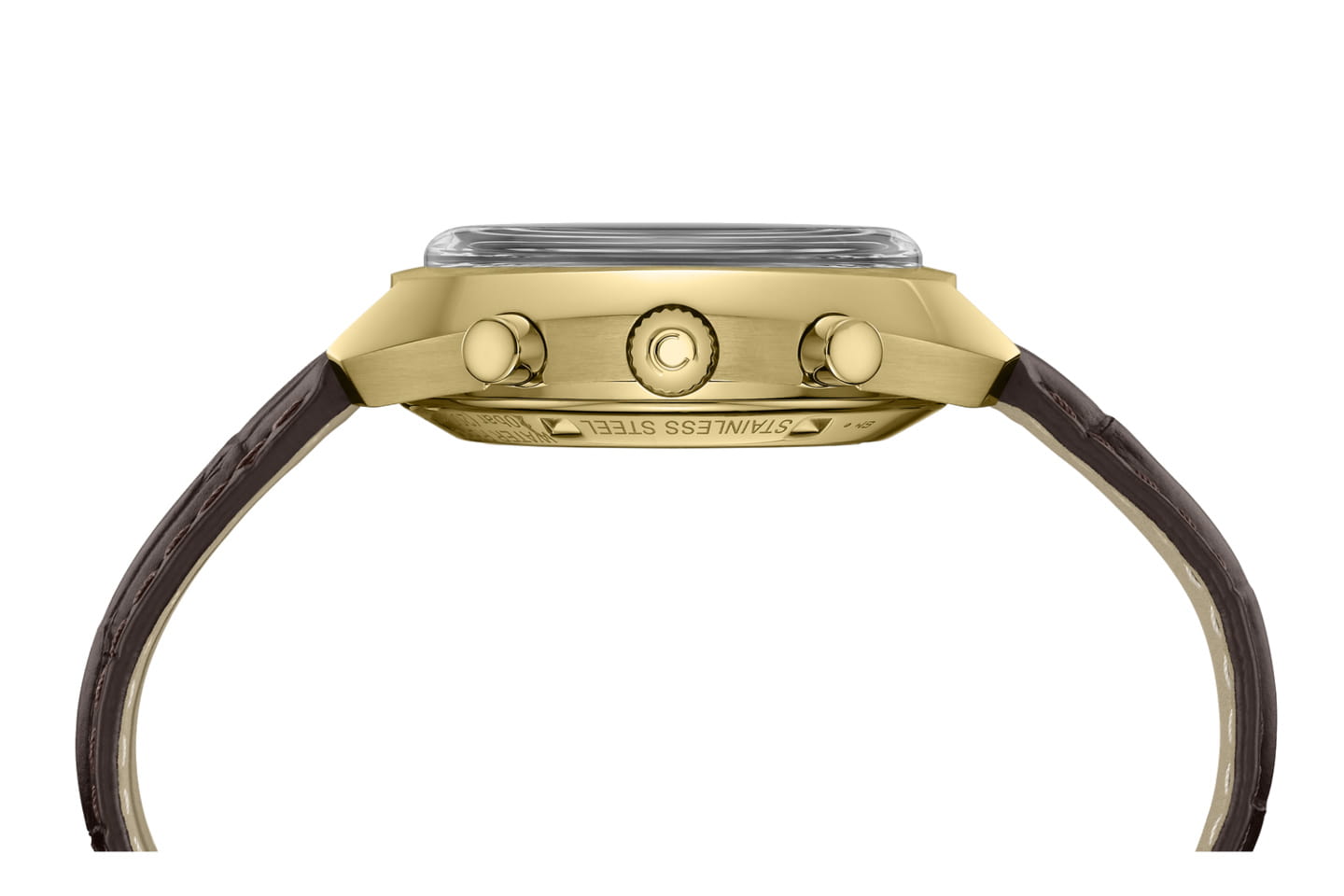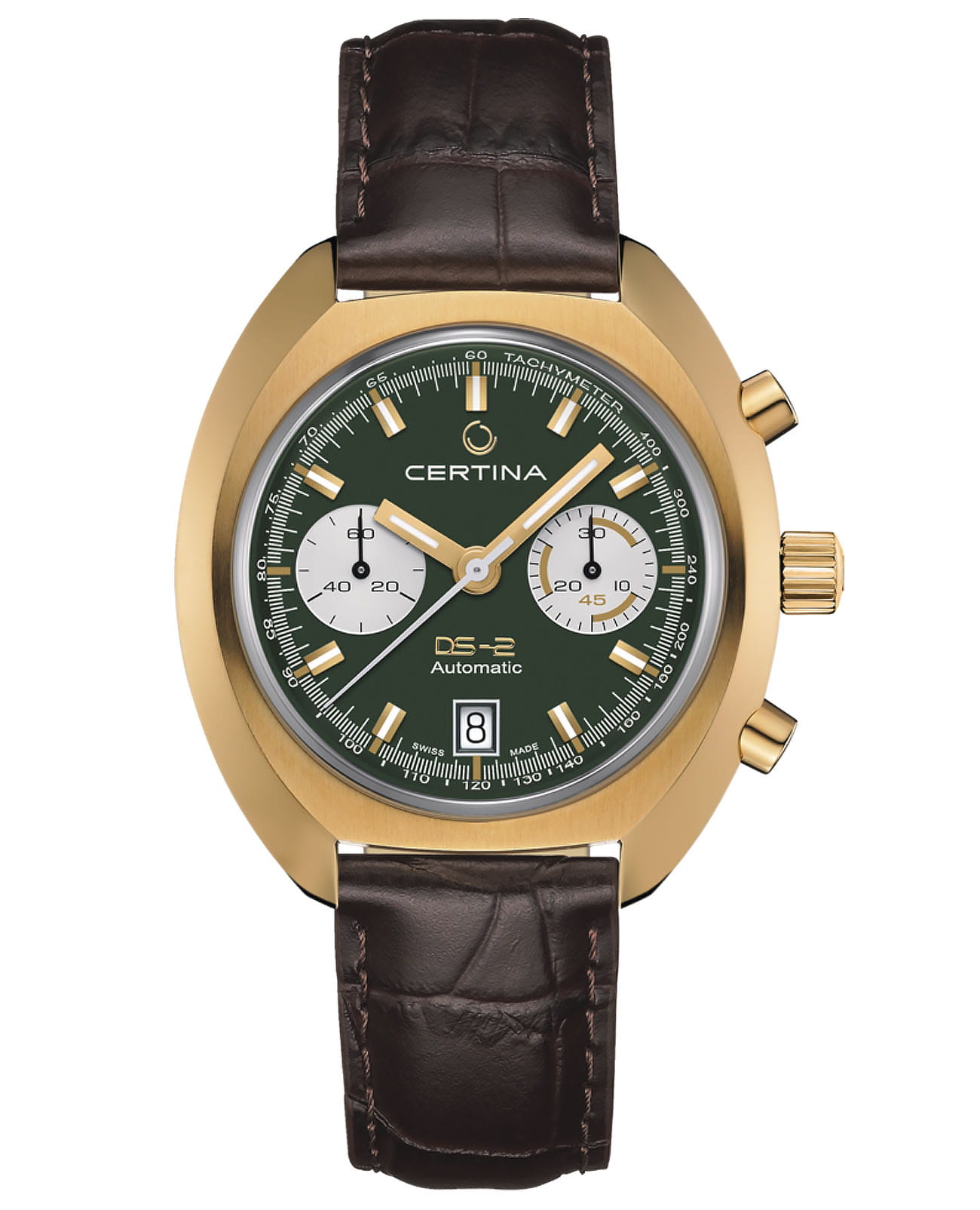 Новый хронографХронографФункция позволяет измерять отрезки времени с особой точностью: часы, минуты, секунды. Верным признаком хронографа является наличие на циферблате 3 дополнительных окошек-счётчиков. от Certina вдохновлен часами, которые были на пике своего времени – буквально! Предшественник модели DS-2 Chronograph Automatic доказал свои исключительные качества во время захватывающей экспедиции на Эверест. Новая модель переносит этот дух приключений в 21 век благодаря спортивно-элегантному винтажному дизайну и кремниевой технологии. Таким образом, традиционное мастерство стильно передается следующему поколению. Циферблат с люминесцентным покрытиемЛюминесцентное покрытиеПозволяет считывать показания времени в темноте. Производители наносят на стрелки, часовые индексы, безель или поверхность циферблата светонакопительный состав, дающий холодное свечение. стрелок и меток, дополнен сапфировым стекломСапфировое стеклоПрочный и надёжный материал из кристалла сапфира синтетического происхождения, характеризующийся особой твёрдостью и устойчивостью к царапинам и повреждениям., устойчивым к появлению царапин и обладающее высокой прозрачностью. Корпус из нержавеющей стали 316L c PVDPVDУльтратонкое покрытие наносится в технике вакуумного напыления, сочетает в себе нитрид титана особой прочности со слоем золота или оксида хрома. Несёт в себе декоративную или защитную функцию. покрытием. Кожаный браслет оснащен надежной и весьма удобной в пользовании застёжкой-бабочкой с кнопкамиЗастёжка "бабочка"Такой вид застёжки дополняется предохранителями, помогающими избежать случайного раскрытия браслета. Обладают изящным исполнением. .