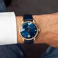 Мужские механические часы Certina C029.426.36.041.00 — это сочетание элегантности, надёжности и швейцарского мастерства. Модель выполнена из нержавеющей стали с PVD-покрытиемPVDУльтратонкое покрытие наносится в технике вакуумного напыления, сочетает в себе нитрид титана особой прочности со слоем золота или оксида хрома. Несёт в себе декоративную или защитную функцию. цвета золота, придающим корпусу благородный внешний вид и устойчивость к царапинам. Диаметр корпуса составляет 41 мм, толщина — 11 мм, что обеспечивает идеальный баланс на запястье. Циферблат синего цвета выполнен в технике sunray, создающей эффект переливающихся лучей, и дополнен золотистыми метками и стрелками. Информация о дате отображается через крупное окошко Big Date, обеспечивающее удобство чтения. Защиту циферблата обеспечивает сапфировое стеклоСапфировое стеклоПрочный и надёжный материал из кристалла сапфира синтетического происхождения, характеризующийся особой твёрдостью и устойчивостью к царапинам и повреждениям. с антибликовым покрытием, устойчивое к повреждениям и обеспечивающее чёткую видимость при любом освещении. Часы оснащены автоматическим механизмом Powermatic 80Powermatic 80Эксклюзивный калибр от швейцарской компании ETA с увеличенным запасом хода до 80 часов за счёт удлинённой заводной пружины. Характеризуется улучшенной системой спуска со сниженным трением., который обеспечивает запас хода до 80 часов. Технология DS (Double Security)Ударопрочный корпусМеханизм заключён в корпус, выполненный из современных материалов, устойчивых к ударам, механическим повреждениям и падению с высоты: инновационный пластик, карбон, нержавеющая сталь, титан. защищает механизм от ударов и вибрации, повышая его долговечность. Водонепроницаемость позволяет использовать часы при плавании и других водных активностях. Ремешок изготовлен из натуральной кожи, обеспечивая комфорт и завершая классический образ модели. Эти часы станут универсальным аксессуаром для тех, кто ценит сочетание стиля, точности и надёжности — идеальный выбор для уверенных в себе мужчин.