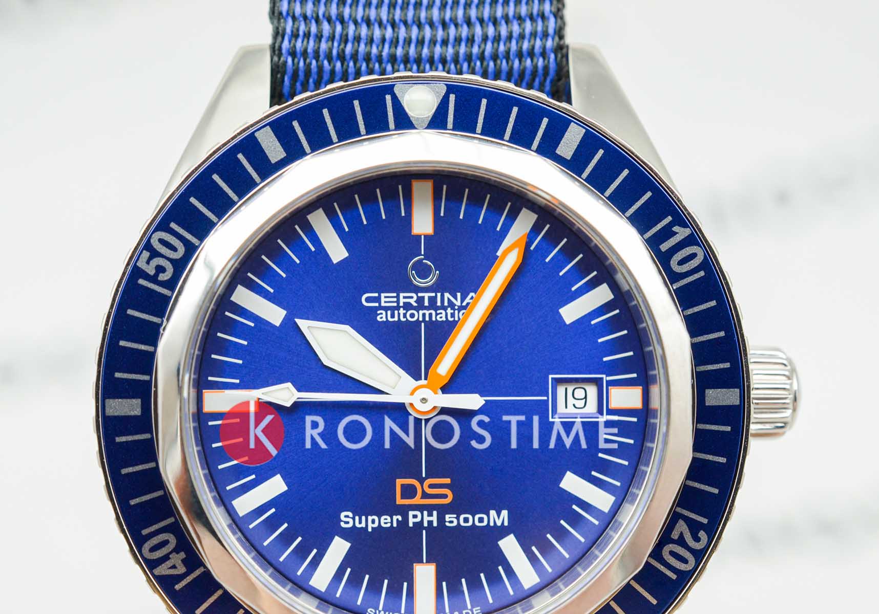Впечатляющий DS Super PH500M привлечет всеобщее внимание своим винтажным стилем. Бесчисленные функциональные характеристики этих дайв-часов, такие как спираль Nivachron™Nivachron™Специально разработанный инновационный сплав Nivachron™ повышает устойчивость часов к воздействию магнитных полей., устойчивая к магнитным полям, и ее герметичность до 500 м, делают их идеальным компаньоном даже под водой, поскольку они соответствуют высоким требованиям ISO 6425. C037.407.18.040.10 имеет калибр Powermatic 80Powermatic 80Эксклюзивный калибр от швейцарской компании ETA с увеличенным запасом хода до 80 часов за счёт удлинённой заводной пружины. Характеризуется улучшенной системой спуска со сниженным трением., который позволяет увеличить запас хода до 80 часов. Антибликовое Сапфировое стеклоСапфировое стеклоПрочный и надёжный материал из кристалла сапфира синтетического происхождения, характеризующийся особой твёрдостью и устойчивостью к царапинам и повреждениям., синий циферблат, индексы и серебряные стрелки с покрытием Superluminova, синий безель из алюминия, окно даты в положении «3 часа», синий нейлоновый ремешок с классической пряжкой.