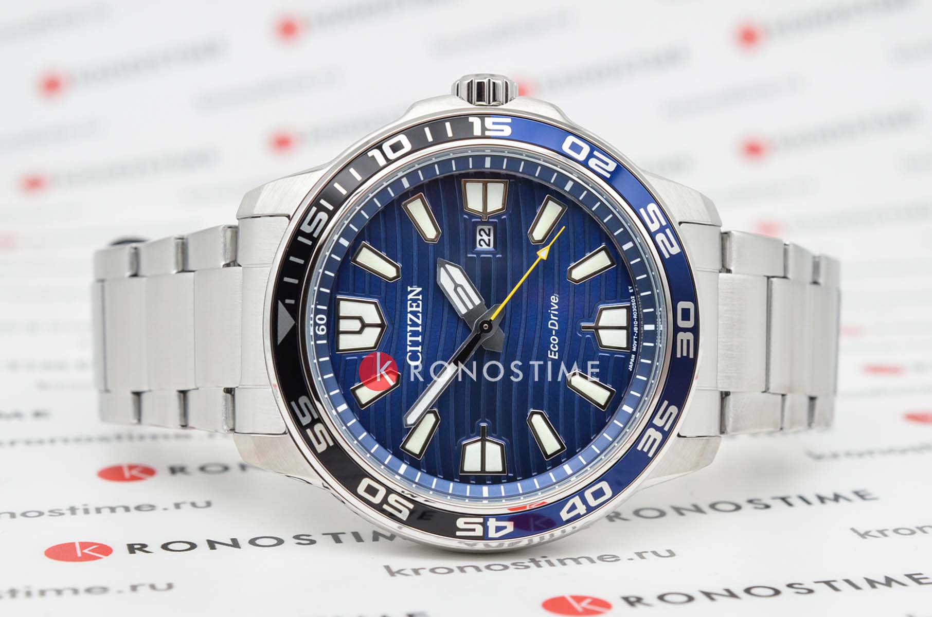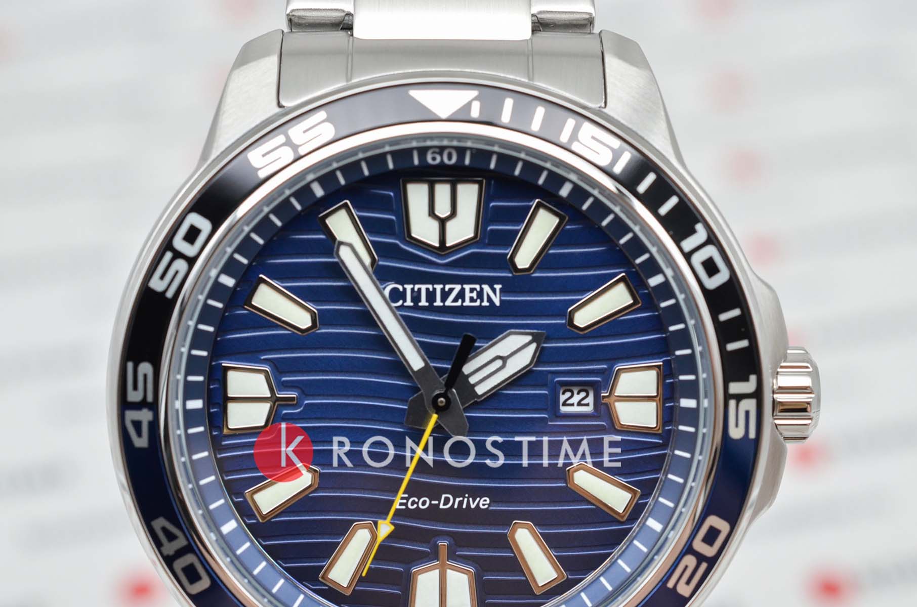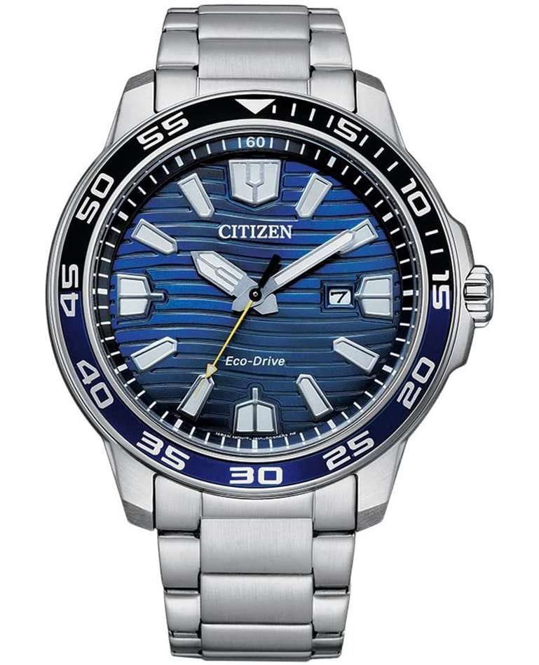 Часы Citizen AW1525-81L – это стильная и надежная модель японского производства, идеально подходящая для активного образа жизни. Корпус выполнен из высококачественной нержавеющей стали, в то время как на безельБезельВнешний ободок, закрепляющий стекло. В спортивных часах так называется поворотное кольцо с делениями на циферблате, выполняет роль таймера – замеряет отрезки времени на шкале. Неподвижный безель – элемент декора. Однонаправленно вращающийся безель на дайверских часах позволяет фиксировать моменты погружения и выныривания на поверхность. нанесено черное и синее PVD-покрытиеPVDУльтратонкое покрытие наносится в технике вакуумного напыления, сочетает в себе нитрид титана особой прочности со слоем золота или оксида хрома. Несёт в себе декоративную или защитную функцию., браслет также стальной. Синий циферблат украшен метками в виде штрихов и оснащен календарем с окошком даты. Защиту от повреждений обеспечивает прочное минеральное стеклоМинеральное стеклоМинеральное стекло представляет собой искусственно выращенный минерал кварца. Такое стекло отличается особой устойчивостью к повреждениям и царапинам. Уступает по некоторым качествам сапфировому стеклу., а водонепроницаемость до 100 метров позволяет не снимать часы во время плавания и занятий спортом. Внутри установлен надежный кварцевый механизм Citizen J810 с инновационной системой Eco-Drive, которая питается от солнечной энергии и не требует замены батарейки, обеспечивая запас хода до 240 дней. Стрелки и часовые метки с люминесцентным покрытиемЛюминесцентное покрытиеПозволяет считывать показания времени в темноте. Производители наносят на стрелки, часовые индексы, безель или поверхность циферблата светонакопительный состав, дающий холодное свечение. обеспечивают отличную читаемость даже в темноте. Функция индикации заряда EOLEOLПредставляет собой систему, уведомляющую владельца часов о необходимости замены элемента питания. За 2 недели до полного разряда батарейки секундная стрелка перестаёт ходить чётко и начинает перепрыгивать на 3-4 деления. подскажет, когда потребуется подзарядка. Корпус диаметром 45,9 мм, толщина 11,8 мм, ширина браслета 22 мм, вес модели составляет 160 граммов. Завинчивающаяся задняя крышка украшена фирменной гравировкой Eco-Drive, а заводная головка оснащена защитой. Надежная раскладная застёжкаРаскладная застёжкаТакой тип застёжки используется только на браслетах из металла. Она никогда не раскрывается полностью, происходит разделение на 2 и более частей. Раскладывающая застёжка снизит вероятность потери часов к минимуму. браслета с системой блокировки гарантирует комфортное и безопасное ношение.