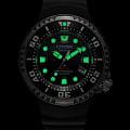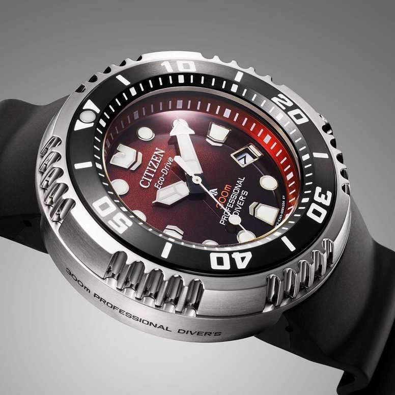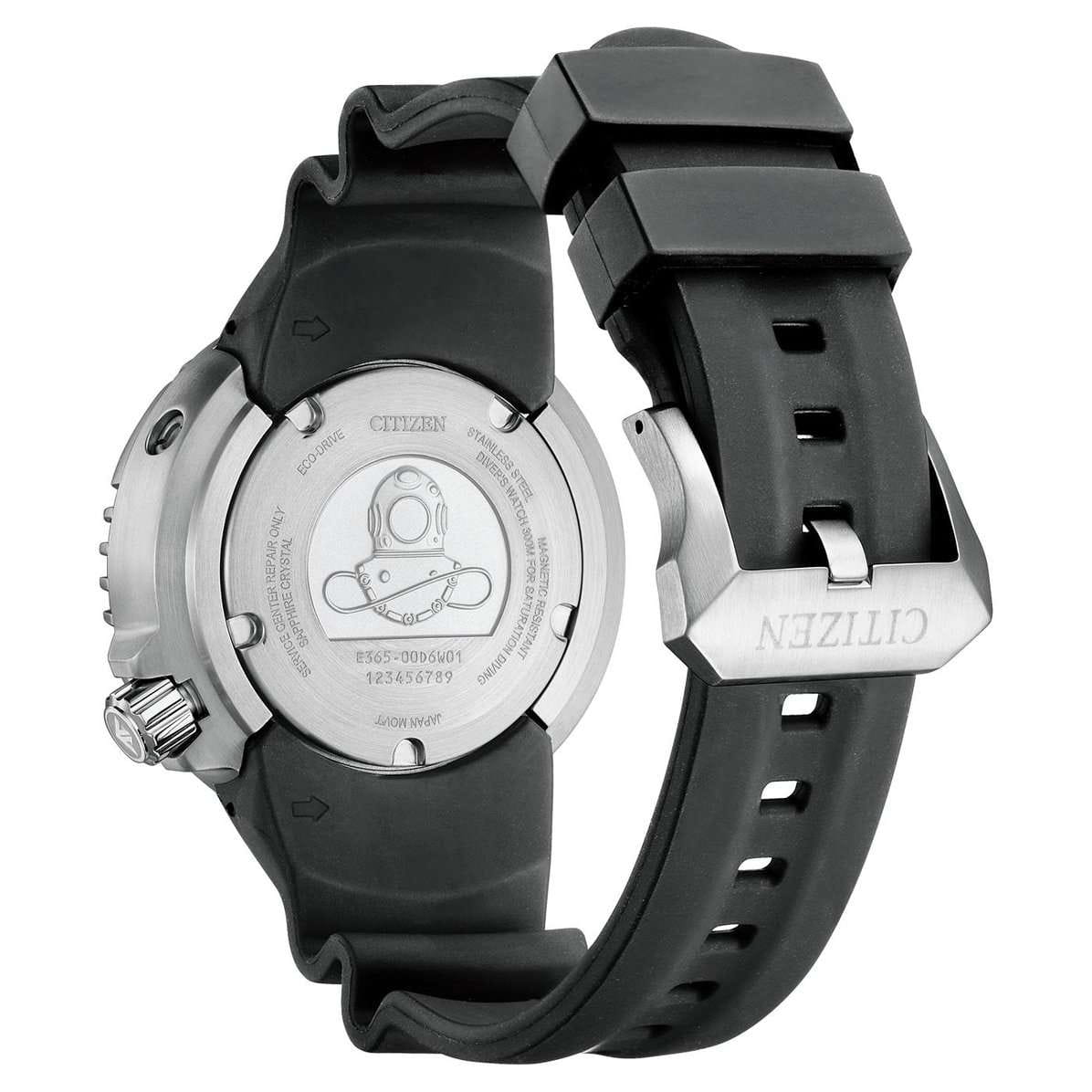 Мужские часы Citizen Promaster BN1024-01Z спортивного дизайна с высоким уровнем водозащиты. Корпус из нержавеющей стали диаметром 46 мм идеально сбалансирован. Сапфировое стеклоСапфировое стеклоПрочный и надёжный материал из кристалла сапфира синтетического происхождения, характеризующийся особой твёрдостью и устойчивостью к царапинам и повреждениям. с антибликовым покрытием обеспечивает отличную защиту циферблата от царапин. Часы работают на основе кварцевого механизма, функция Eco-Drive (питание от солнечной энергии, запас хода 180 дней, не требующей замены батарейки). Каучуковый ремешок на стандартной застёжке идеально дополняют дизайн часов, обеспечивая комфортное ношение. Стрелки и метки на циферблате имеют люминесцентное покрытиеЛюминесцентное покрытиеПозволяет считывать показания времени в темноте. Производители наносят на стрелки, часовые индексы, безель или поверхность циферблата светонакопительный состав, дающий холодное свечение. позволяющее легко определять время даже в темноте. БезельБезельВнешний ободок, закрепляющий стекло. В спортивных часах так называется поворотное кольцо с делениями на циферблате, выполняет роль таймера – замеряет отрезки времени на шкале. Неподвижный безель – элемент декора. Однонаправленно вращающийся безель на дайверских часах позволяет фиксировать моменты погружения и выныривания на поверхность. с IP-покрытиемIP-покрытиеМетод ионного напыления. Демонстрирует повышенную устойчивость к истиранию, окислению и химическим веществам. Под воздействием высокого давления и температуры около 1500°C молекулы металла надёжно соединяются с частицами корпуса часов. вращается в одном направлении. Функция индикации заряда (EOL) и предотвращения перезарядки. Окошко даты находится в положении 4 часа. Часы обладают впечатляющей водонепроницаемостью до 300WR, что делает их идеальными для плавания, ныряния и погружений с аквалангом.
