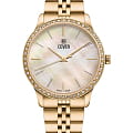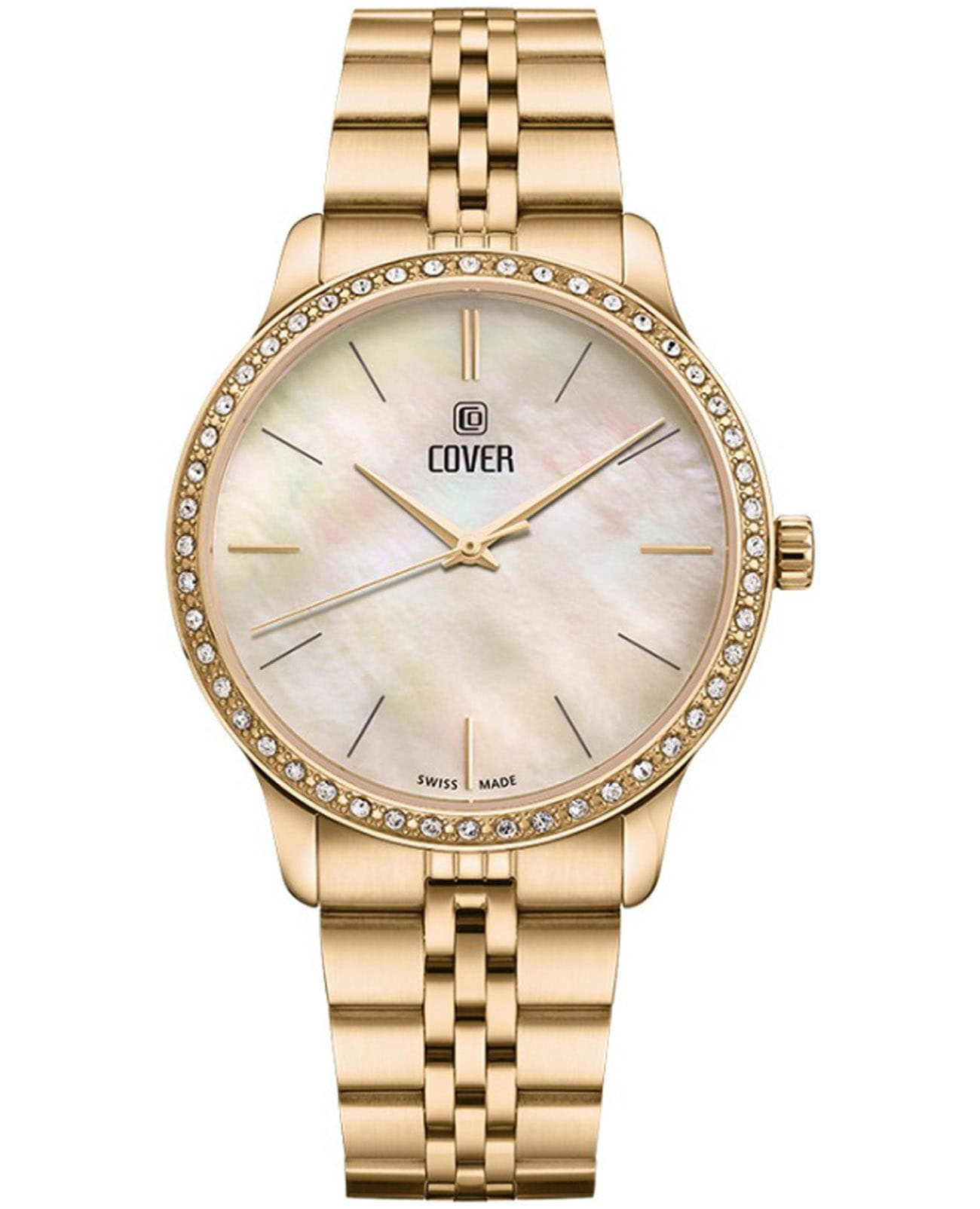 Женские наручные часы Cover Saraya CO206.04 сочетают в себе элегантный дизайн и надежность современных технологий. Модель обладает круглым корпусом диаметром 36 мм, изготовленным из нержавеющей стали с PVD-покрытиемPVDУльтратонкое покрытие наносится в технике вакуумного напыления, сочетает в себе нитрид титана особой прочности со слоем золота или оксида хрома. Несёт в себе декоративную или защитную функцию., что обеспечивает высокую устойчивость к внешним воздействиям.  Безель из стали с PVD-покрытиемPVDУльтратонкое покрытие наносится в технике вакуумного напыления, сочетает в себе нитрид титана особой прочности со слоем золота или оксида хрома. Несёт в себе декоративную или защитную функцию. декорирован кристаллами Swarowsky, которые придают часам особый шик и неповторимый вид. Для защиты используется сапфировое стеклоСапфировое стеклоПрочный и надёжный материал из кристалла сапфира синтетического происхождения, характеризующийся особой твёрдостью и устойчивостью к царапинам и повреждениям., обеспечивающее прочную защиту от царапин. Браслет выполнен из нержавеющей стали на раскладной застёжкеРаскладная застёжкаТакой тип застёжки используется только на браслетах из металла. Она никогда не раскрывается полностью, происходит разделение на 2 и более частей. Раскладывающая застёжка снизит вероятность потери часов к минимуму., которая отличается удобством использования. Часы работают на кварцевом механизме, основанном на ETA 902.002, что гарантирует точное время без необходимости подзаводки. Водонепроницаемость часов составляет 5 атмосфер, что позволяет использовать их в повседневной жизни, однако не рекомендуется для плавания или водных видов спорта.