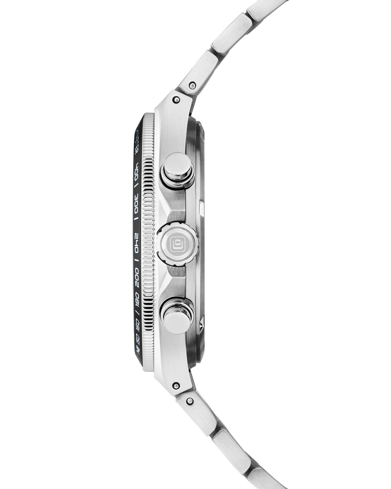 Мужские наручные часы-хронографХронографФункция позволяет измерять отрезки времени с особой точностью: часы, минуты, секунды. Верным признаком хронографа является наличие на циферблате 3 дополнительных окошек-счётчиков. Cover CO212.06 из коллекции Iconosteel сочетают в себе классический дизайн и надежность современных технологий. Часы оснащены кварцевым механизмом с модулем хронографа Ronda 5040.D, они обеспечивают точность и надежность в каждом моменте. Модель обладает круглым корпусом диаметром 41 мм, изготовленным из нержавеющей стали, что обеспечивает высокую устойчивость к внешним воздействиям. Браслет выполнен из нержавеющей стали с раскладной застёжкойРаскладная застёжкаТакой тип застёжки используется только на браслетах из металла. Она никогда не раскрывается полностью, происходит разделение на 2 и более частей. Раскладывающая застёжка снизит вероятность потери часов к минимуму., гарантирующей комфортное ношение и безопасность. Серебристый циферблат оснащен окном даты на «4 часах» и стрелками с люминесцентным покрытиемЛюминесцентное покрытиеПозволяет считывать показания времени в темноте. Производители наносят на стрелки, часовые индексы, безель или поверхность циферблата светонакопительный состав, дающий холодное свечение.. Для защиты используется сапфировое стеклоСапфировое стеклоПрочный и надёжный материал из кристалла сапфира синтетического происхождения, характеризующийся особой твёрдостью и устойчивостью к царапинам и повреждениям., обеспечивающее прочную защиту от царапин и антибликовый эффект. На черный безельБезельВнешний ободок, закрепляющий стекло. В спортивных часах так называется поворотное кольцо с делениями на циферблате, выполняет роль таймера – замеряет отрезки времени на шкале. Неподвижный безель – элемент декора. Однонаправленно вращающийся безель на дайверских часах позволяет фиксировать моменты погружения и выныривания на поверхность. с PVD-покрытиемPVDУльтратонкое покрытие наносится в технике вакуумного напыления, сочетает в себе нитрид титана особой прочности со слоем золота или оксида хрома. Несёт в себе декоративную или защитную функцию. нанесена шкала тахиметраТахиметрРазмеченная шкала, располагается на ободке или безеле часов. Тахиметр позволяет рассчитать скорость на определённом участке пути, расстояние измеряется в километрах или милях.. Модель также является хронографом, оснащенным функцией секундомераСекундомерСекундоме́р — прибор, способный измерять интервалы времени с точностью до долей секунды., делая ее идеальной для активного образа жизни. Водонепроницаемость часов достигает 10 атмосфер (100 метров), что позволяет использовать их во время плавания и других водных видов спорта, однако не рекомендуется для глубоководного дайвинга.