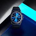 Мужские часы D1 Milano CLRJ04 из коллекции Carbonlite - воплощение инновационного дизайна и передовых материалов. Циферблат с метками в виде штрихов выполнен по технологии Sunray (солнечные лучи). Круглый корпус диаметром 40,5 мм и толщиной 9,7 мм изготовлен из композита углеродного нейлона с поликарбонатной рамкой. Циферблат выполнен в виде "сэндвича" из углеродного волокна. Часы оснащены кварцевым механизмом Miyota GL22, минеральное стекломМинеральное стеклоМинеральное стекло представляет собой искусственно выращенный минерал кварца. Такое стекло отличается особой устойчивостью к повреждениям и царапинам. Уступает по некоторым качествам сапфировому стеклу. с антибликовым покрытием и черным силиконовым ремешком. Водонепроницаемость 5 АТМ, вес всего 47 г. Особенность этой коллекции - использование композитных материалов из углеродного нейлона и волокна, специально разработанных D1 Milano. Нить изготовлена из EPA-CF, прочность на растяжение 140 МПа, деформация 155 градусов, ударная вязкость 18,67 кДж/м2.