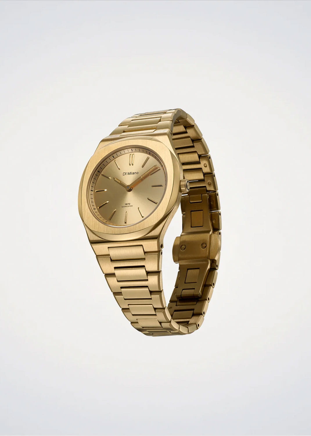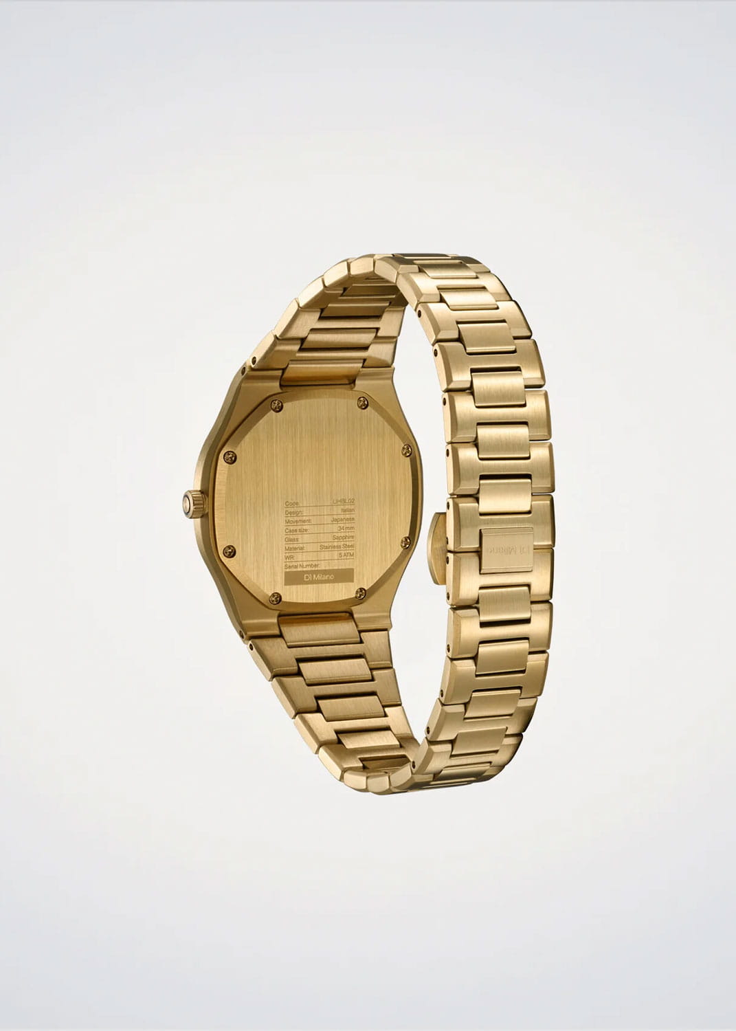 Женские кварцевые часы D1 Milano Ultra Thin UHBL02 — это стильное сочетание элегантности и современного дизайна. Изящный ультратонкий корпус выполнен из нержавеющей стали с PVD-покрытиемPVDУльтратонкое покрытие наносится в технике вакуумного напыления, сочетает в себе нитрид титана особой прочности со слоем золота или оксида хрома. Несёт в себе декоративную или защитную функцию. золотистого цвета, диаметром 34 мм, что придаст образу элегантности и надежности. Изысканный циферблат с метками в виде штрихов придает модели особый блеск. Циферблат защищен сапфировым стекломСапфировое стеклоПрочный и надёжный материал из кристалла сапфира синтетического происхождения, характеризующийся особой твёрдостью и устойчивостью к царапинам и повреждениям. с антибликовым покрытиемАнтибликовое покрытиеСлой оксида металла в 0,13-0,3 микрон, благодаря которому стекло часов не бликует и не отражает свет. Антибликовое покрытие уменьшает отражение света в 10 раз, обеспечивая отличную читаемость показателей циферблата., обеспечивающий устойчивость к царапинам. Стрелки с люминесцентным покрытиемЛюминесцентное покрытиеПозволяет считывать показания времени в темноте. Производители наносят на стрелки, часовые индексы, безель или поверхность циферблата светонакопительный состав, дающий холодное свечение.. Часы оснащены надежным кварцевым механизмом. Стальной браслет с PVD-покрытиемPVDУльтратонкое покрытие наносится в технике вакуумного напыления, сочетает в себе нитрид титана особой прочности со слоем золота или оксида хрома. Несёт в себе декоративную или защитную функцию. на застёжке-бабочке с кнопкамиЗастёжка "бабочка"Такой вид застёжки дополняется предохранителями, помогающими избежать случайного раскрытия браслета. Обладают изящным исполнением. , гарантирует комфортное и безопасное ношение. Класс водозащиты: 50 метров позволит защитить корпус от случайных брызг или капель дождя. Отличный выбор для тех, кто ценит утонченность и качество.