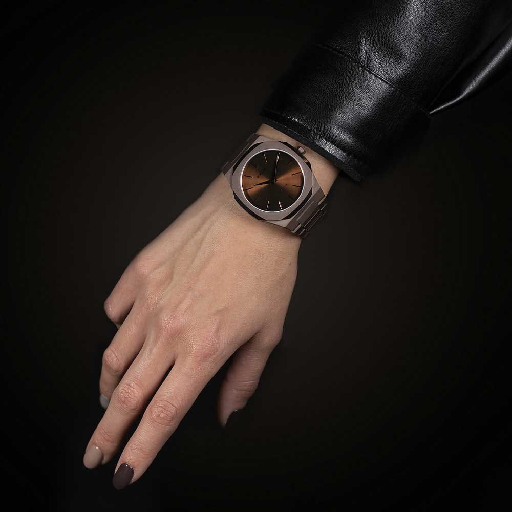 Часы D1 Milano UTBJ10 — это уникальные кварцевые часы, которые подчеркнут ваш изысканный стиль. Эти наручные часы из коллекции Ultra Thin с эффектным монохромным дизайном станут выразительным акцентом вашего образа. Корпус диаметром 40 мм из нержавеющей стали с PVDPVDУльтратонкое покрытие наносится в технике вакуумного напыления, сочетает в себе нитрид титана особой прочности со слоем золота или оксида хрома. Несёт в себе декоративную или защитную функцию. покрытием придает часам современный и утонченный вид. Коричневый циферблат, выполненный по технологии Sunray, с метками в виде штрихов, и такие же коричневые хроматические стрелки и индексы подчеркивают элегантность модели. Задняя крышка из нержавеющей стали закреплена на 8-х винтах и дополнена индивидуальным серийным номером, что подчеркивает уникальность каждого экземпляра. Стальной браслет с PVDPVDУльтратонкое покрытие наносится в технике вакуумного напыления, сочетает в себе нитрид титана особой прочности со слоем золота или оксида хрома. Несёт в себе декоративную или защитную функцию. покрытием и раскладной застёжкойРаскладная застёжкаТакой тип застёжки используется только на браслетах из металла. Она никогда не раскрывается полностью, происходит разделение на 2 и более частей. Раскладывающая застёжка снизит вероятность потери часов к минимуму. обеспечивает надежность и комфорт в повседневном использовании. Сапфировое стеклоСапфировое стеклоПрочный и надёжный материал из кристалла сапфира синтетического происхождения, характеризующийся особой твёрдостью и устойчивостью к царапинам и повреждениям. с антибликовым покрытием защищает циферблат, а водозащита до 50WR делает эти часы практичным выбором для любых условий. Благодаря калибру Miyota 1L22, они отличаются точностью и надежностью. Эти итальянские часы представляют собой идеальное сочетание традиционного мастерства и инновационного подхода, воплощая в себе новый взгляд на классическую элегантность.